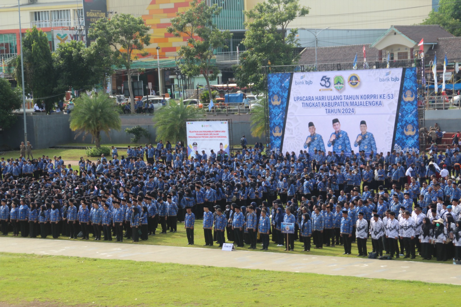 Dalam sambutannya, Presiden Republik Indonesia Prabowo Subianto yang dibacakan Pj. Bupati Majalengka Dedi Sopandi mengucapkan terimakasih dan penghargaan setinggi-tingginya kepada keluarga besar Korpri yang selama lebih setengah abad telah memberikan pengabdian terbaik, dengan loyalitas dan dedikasi tinggi kepada bangsa dan negara.