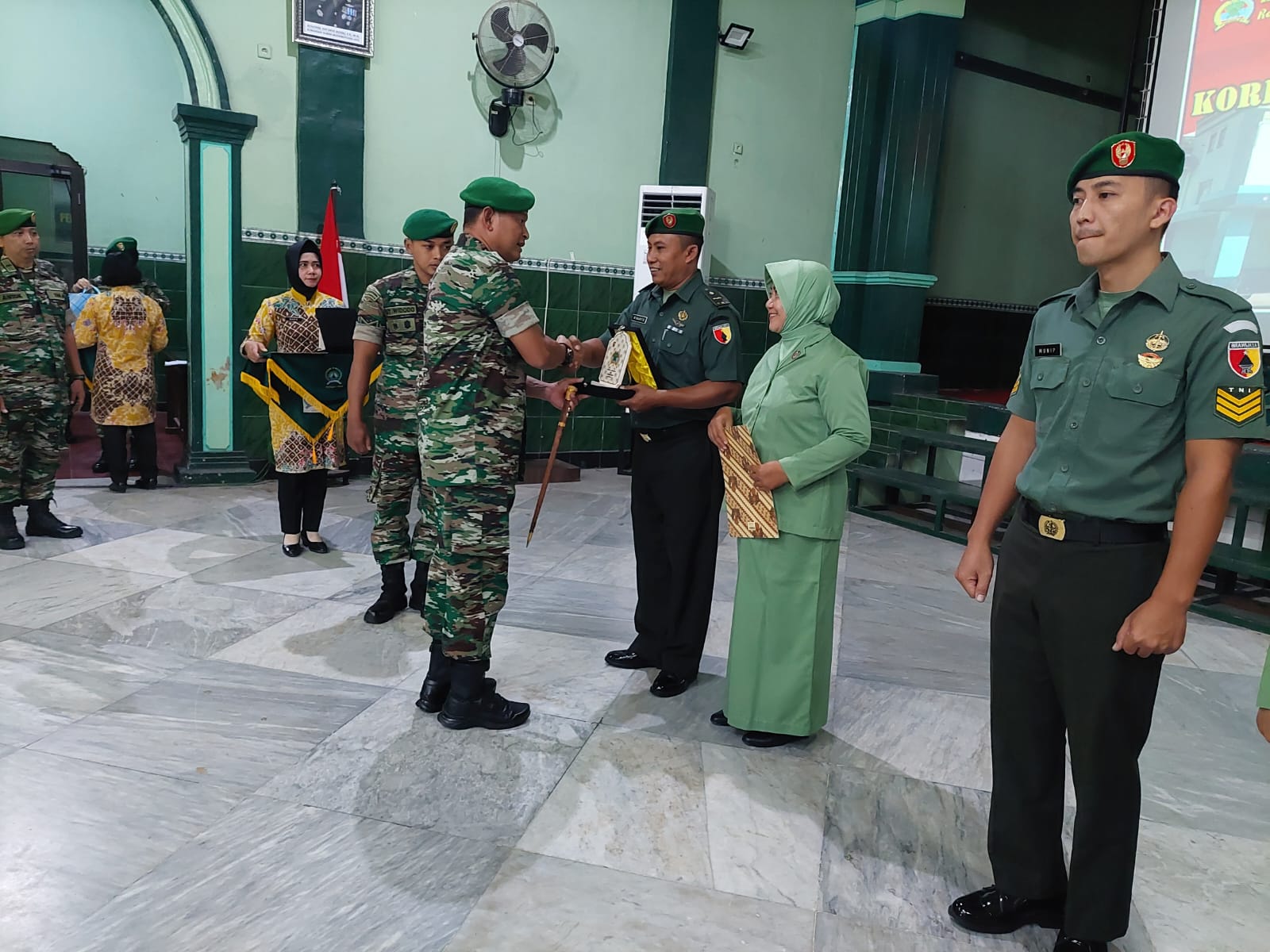 Pada akhir upacara tersebut Dandim memberikan piagam penghargaan kepada prajurit yang pindah satuan.
