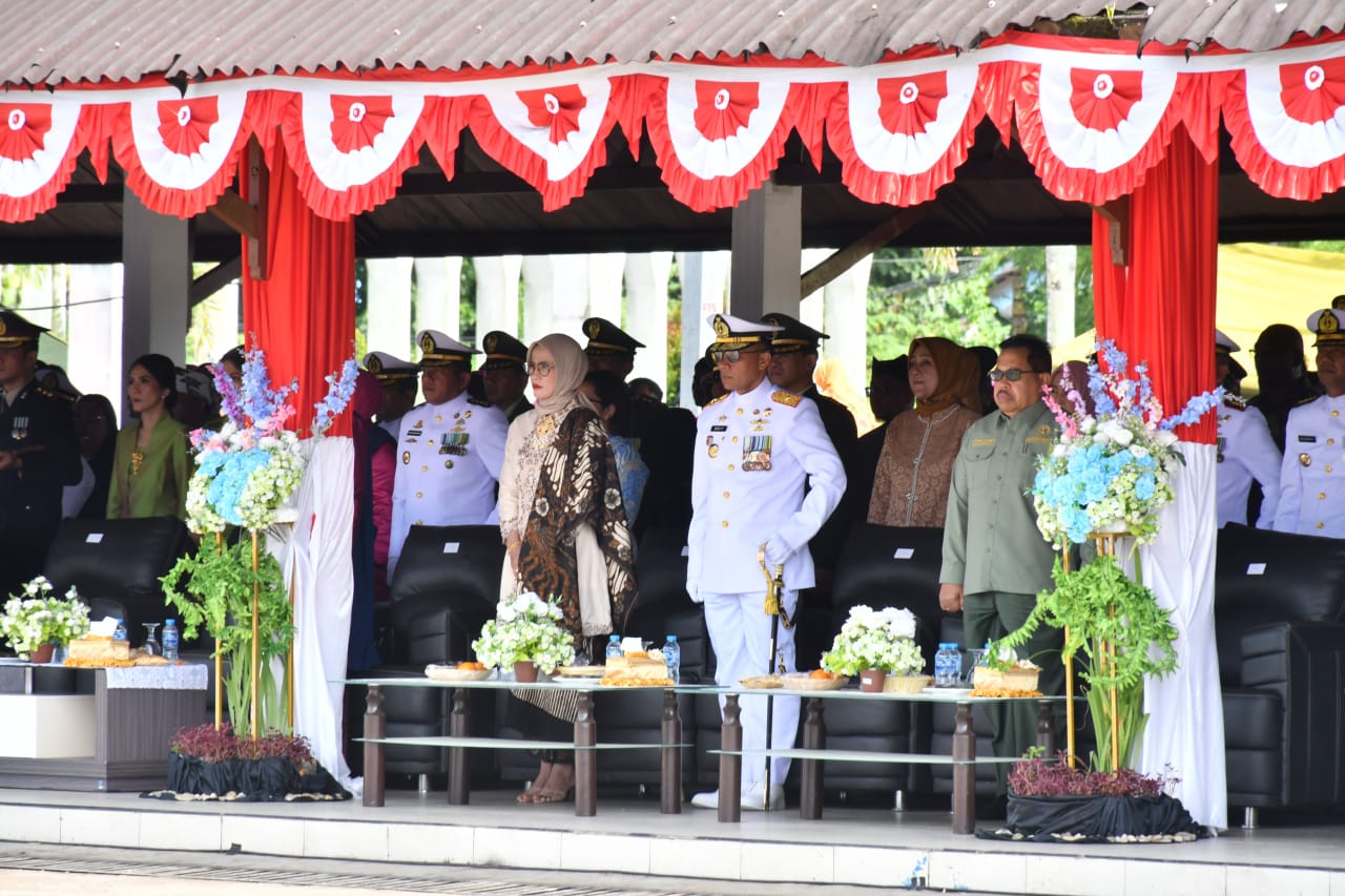 SORONG PBD, BUSERJATIM.COM GROUP – Dalam rangka memperingati Hari Ulang Tahun ke-79 Tentara Nasional Indonesia (TNI), Komandan Pangkalan Utama TNI AL (Danlantamal) XIV Sorong, Laksma TNI Deny Prasetyo didampingi oleh Ibu Ketua Jalasenastri Korcab XIV DJA III Ny. Nila Deny Prasetyo menghadiri upacara peringatan HUT ke – 79 TNI, di Alun-alun Kota Baru Aimas, Jl. Sorong – Aimas, Malawili, distrik. Aimas, Kabupaten Sorong, Papua Barat Daya. Sabtu (05/10/24).