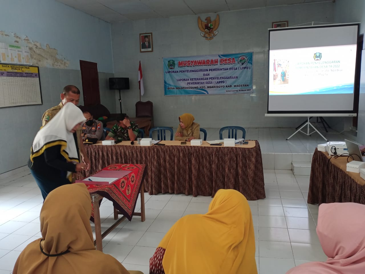 Kegiatan Musyawarah desa (MUSDES) Laporan penyelenggaraan pemerintah desa (LPPD) & Laporan keterangan penyelengaraan pemerintahan desa (LKPPD) tahun 2023 Desa Selopanggung tersebut dihadiri oleh Camat Ngariboyo yang mewakili Kasi PMD Ibu Supriati SE,Danramil 0804/01 Magetan Kapten Caj. Jemani,Kapolsek Ngariboyo Akp.Agus SH,Kepala Desa Selopanggung, Bpk Drs Kaderi,Kasi Trantib kecamatan Ngariboyo Bpk Much Yogi AMD,Babinsa Selopanggung Serda Siswoyo,Bhabinkantibmas Desa Selopanggung Aipda Ardi,Ketua BPD Desa Selopanggung dan Anggotanya,Perangkat Desa Selopanggung,Ketua RT/RW/ Desa Selopanggung.