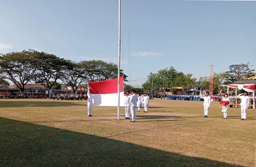 Giat upacara penurunan bendera Merah Putih selesai pukul 17.00 Wib dalam keadaan aman, tertib dan lancer. Pungkas Peltu Sugianto (R 06)