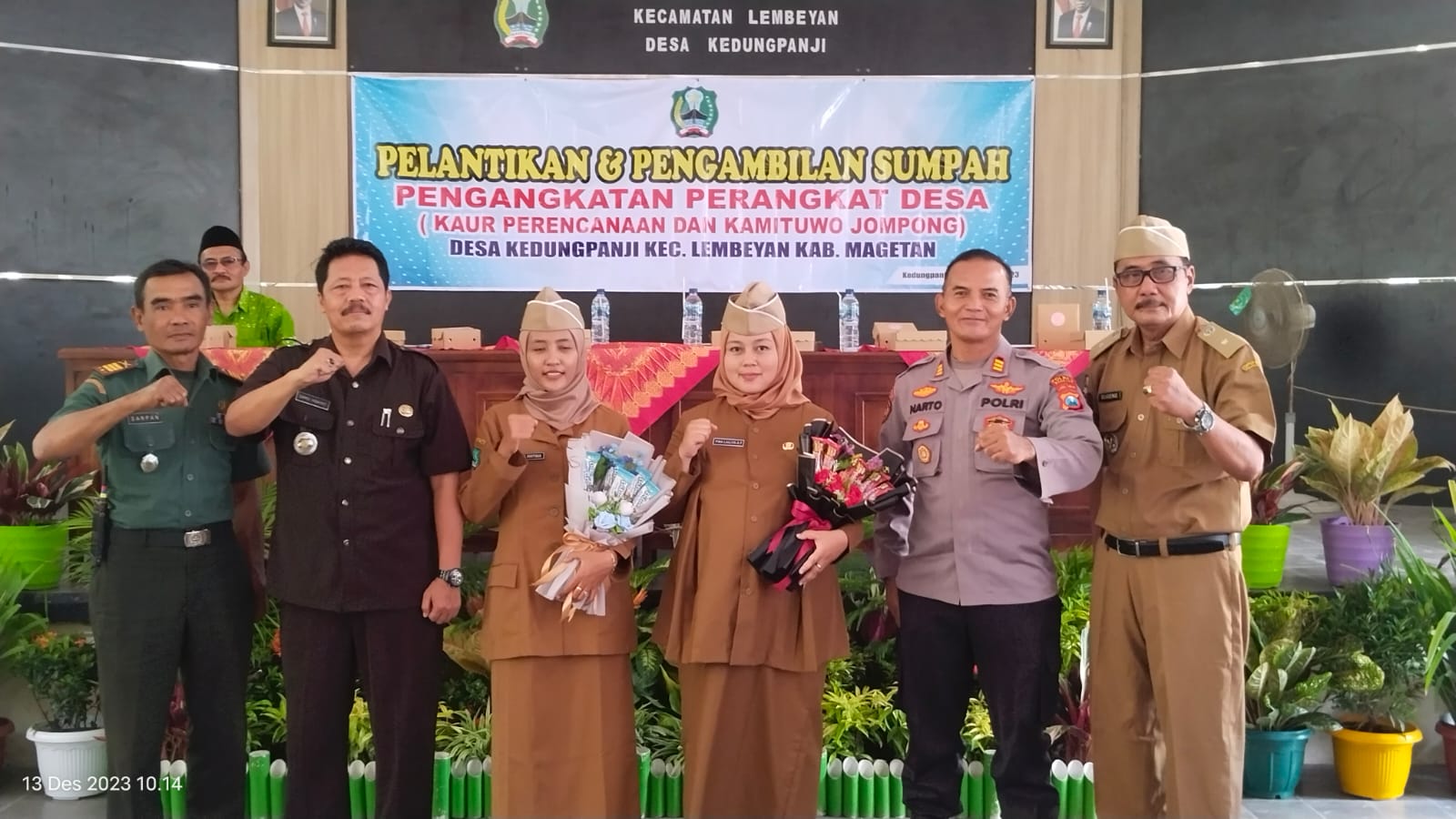 MAGETAN. – Bertempat di Balai Desa Kedungpanji Kecamatan Lembeyan, Kabupaten Magetan, Danramil 0804/12 Lembeyan Kapten Inf Sarpan menghadiri acara Pelantikan dan Pengambilan Sumpah Pengangkatan Perangkat Desa Kedungpanji, Kecamatan Lembeyan. Rabu (13/12/23)