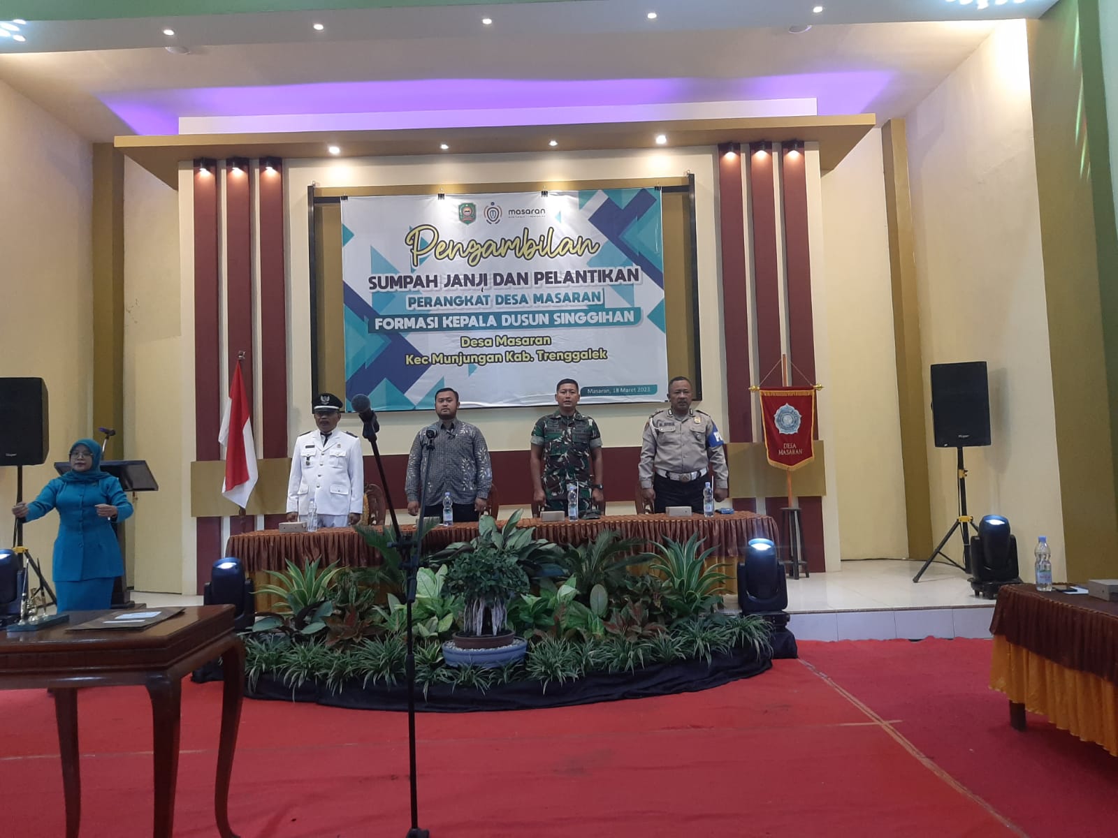 Kepala Desa Masaran dalam sambutannya mengucapkan selamat kepada bapak Ari Widodo sebagai Kasun Singgihan yang baru. Dengan dilantiknya Kasun Singihan pada hari ini akan menambah kelengkapan perangkat di Desa Masaran dalam melayani aspirasi warga.