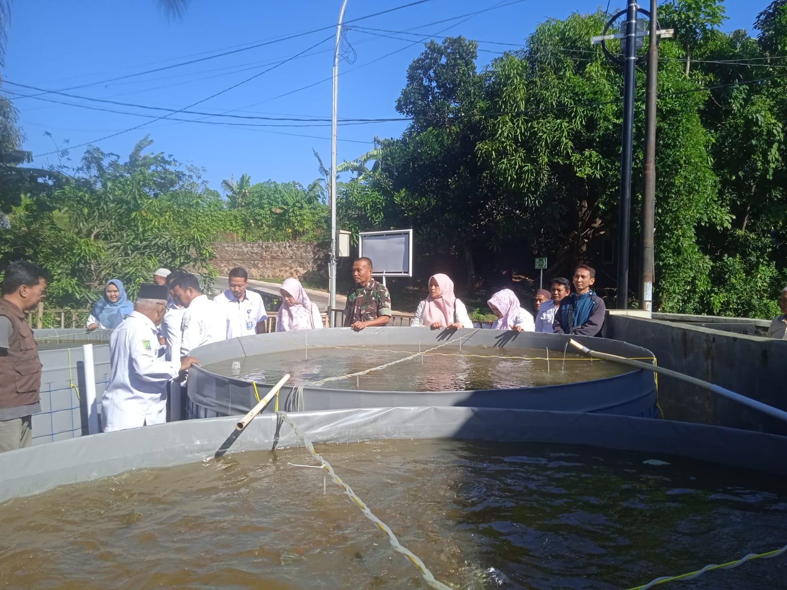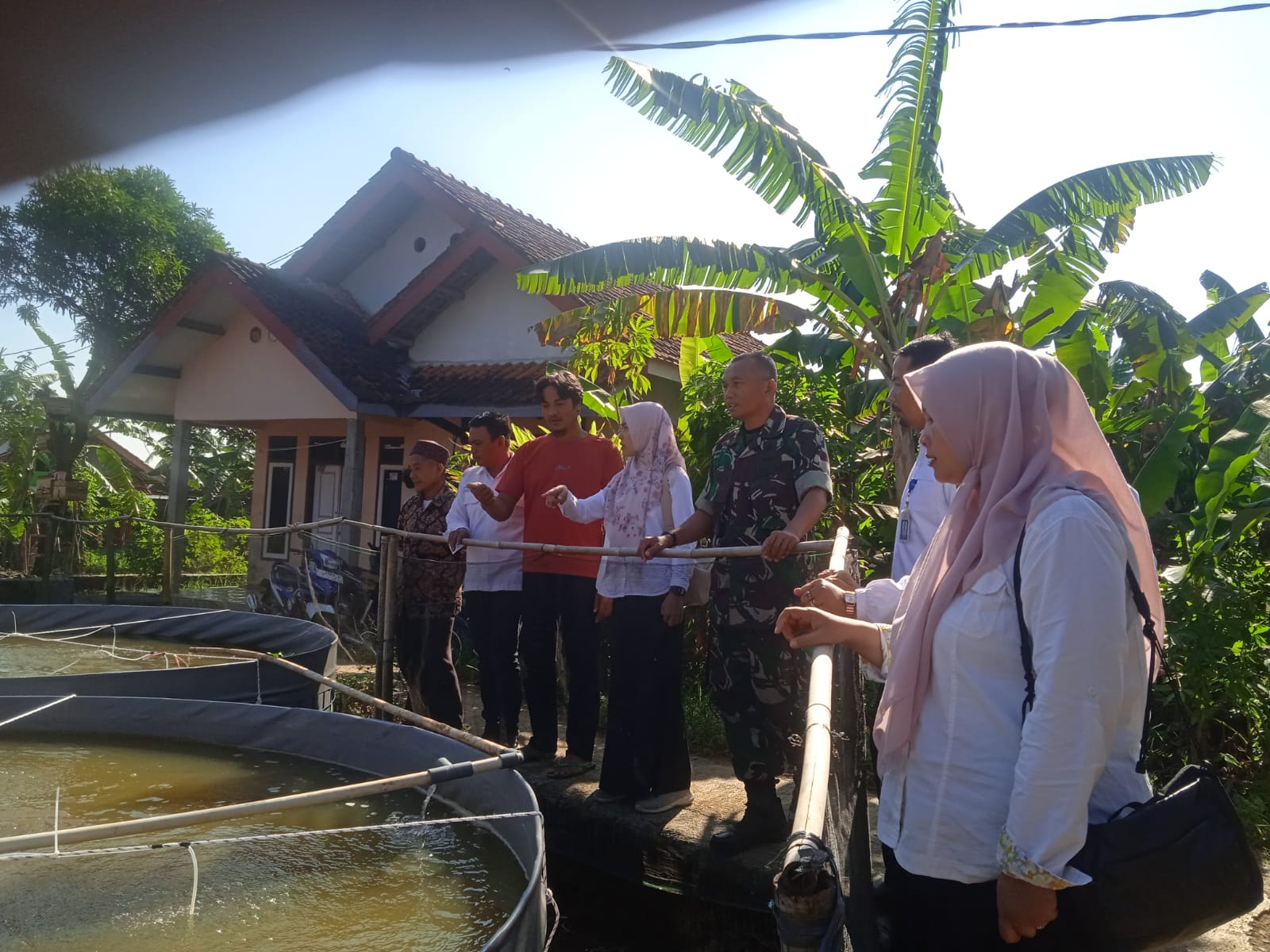 Majalengka – Dalam rangka mendukung program ketahanan pangan dan pemberdayaan ekonomi masyarakat, Danramil 1708/Sukahaji Kapten Inf Aceng Junandi turut mendampingi kunjungan kerja Ibu Camat Sukahaji ke Kelompok Budidaya Ikan Nila sistem Bioplok di Desa Manjeti, Kecamatan Sukahaji, Kabupaten Majalengka, Rabu (9/7/2025).