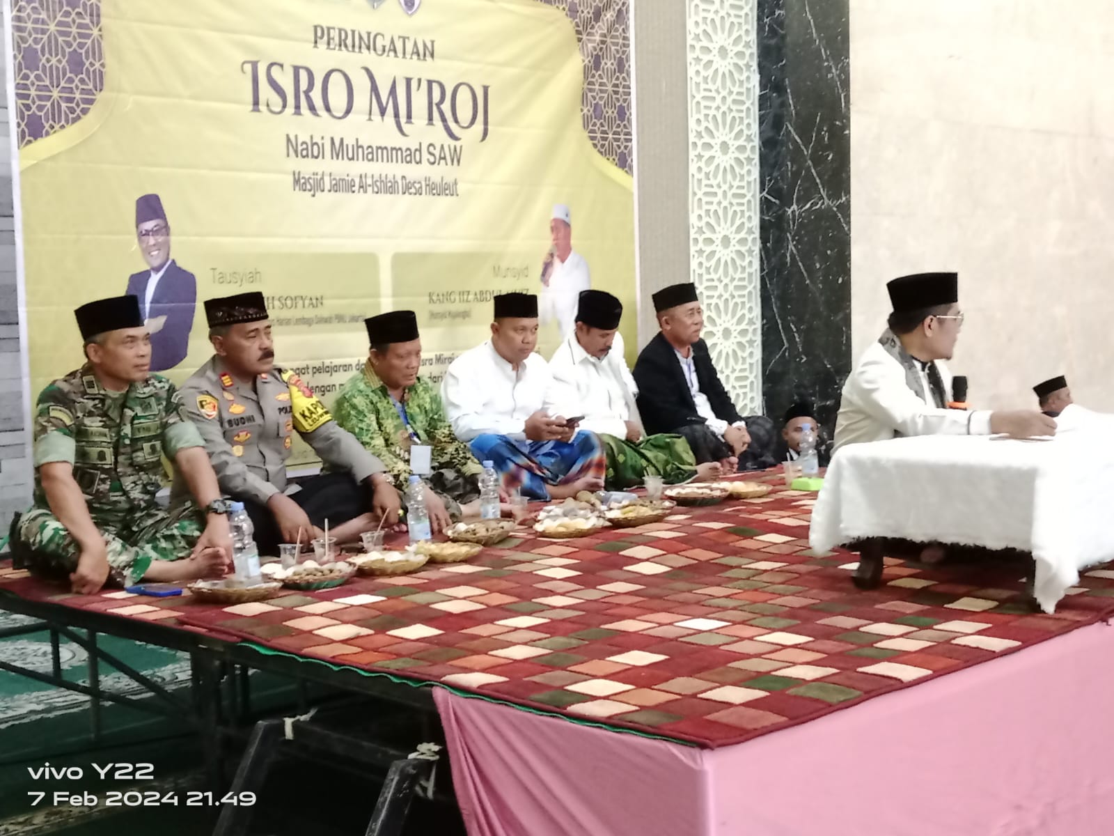 Majalengka – Kapten Arm Agus Rachman Danramil 1710/Leuwimunding Kodim 0617/Majalengka menghadiri peringatan Isra Mi’raj Nabi Muhanmad SAW 1445 H/2024 M, bertempat di Mesjid Al Ishlah Desa Heuleut, Kecamatan Leuwimunding, Kabupaten Majalengka, pada Rabu (7/2/2024) malam.