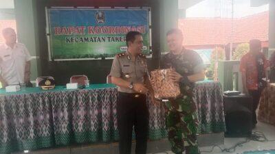 Rapat tersebut bertujuan untuk menjalin kerja sama yang baik agar terjalin koordinasi yang maksimal antar instansi pemerintahan sehingga dapat mewujudkan pembangunan wilayah Kecamatan Takeran secara maksimal.