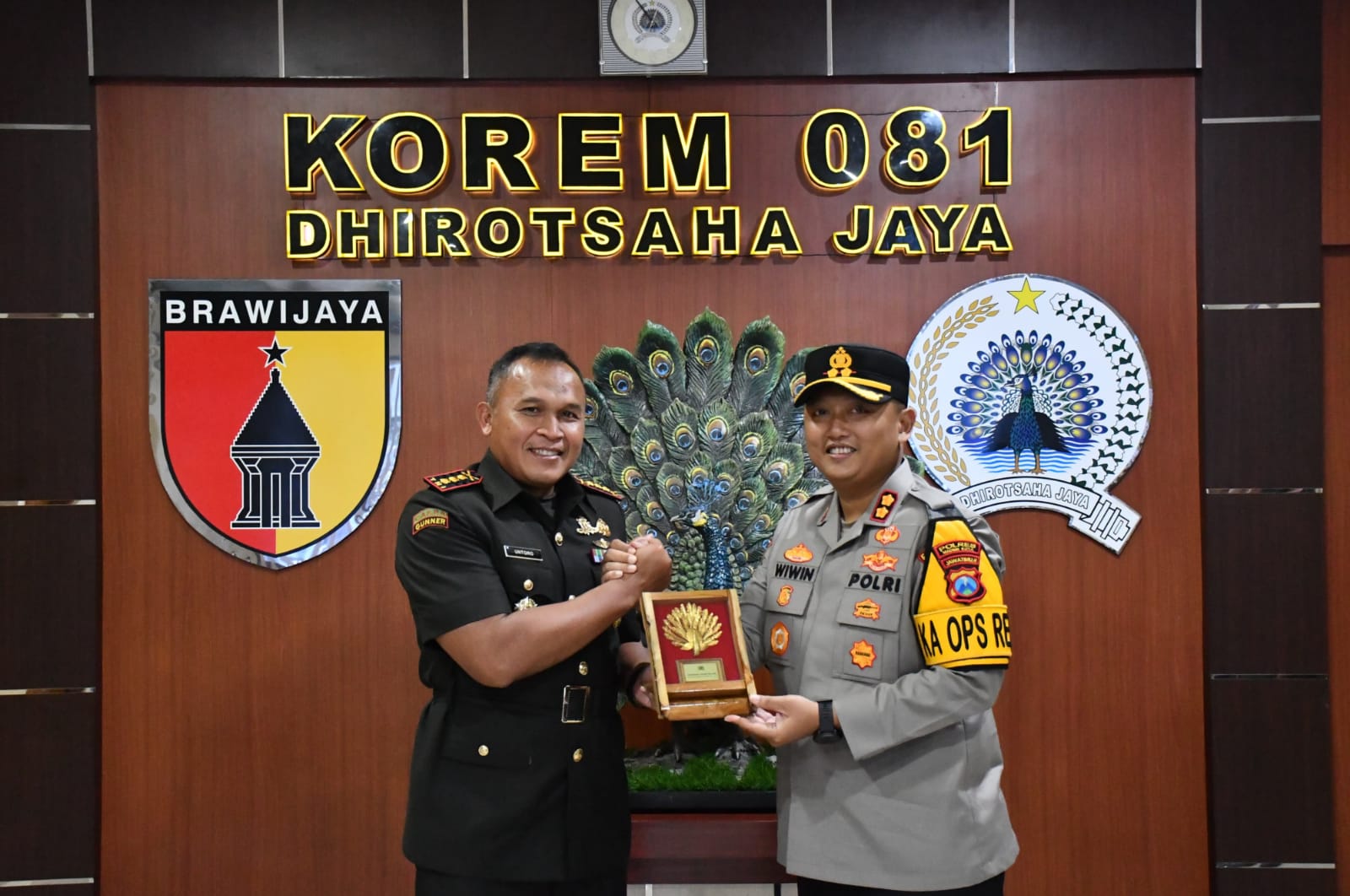 Madiun, – Danrem 081/DSJ, Kolonel Arm Untoro Hariyanto menerima kunjungan Kapolres Madiun Kota, AKBP Wiwin Junianto Supriyadi, bertempat di Ruang Transit Makorem, Jl. Pahlawan No. 50 Kota Madiun, Senin (5/5/2025).