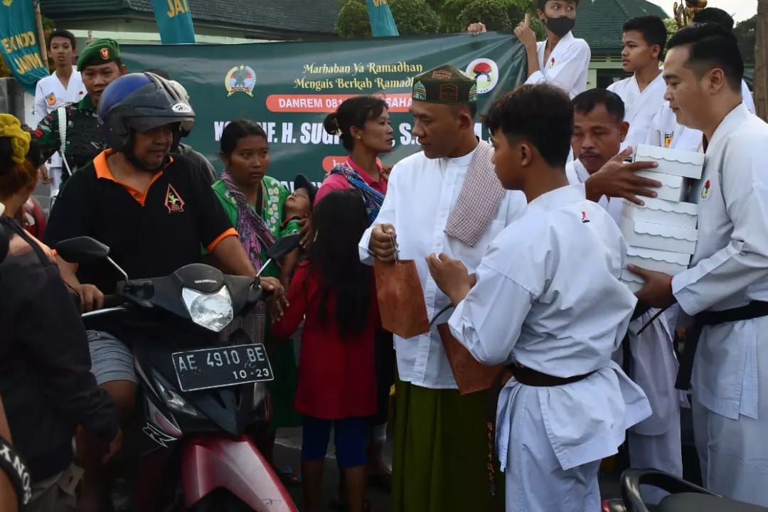MADIUN,MATAMAJA GROUP – Danrem 081/DSJ Kolonel Inf H. Sugiyono bersama INKAI Ranting Dhorotsaha Jaya melakukan aksi sosial dengan berbagi takjil.