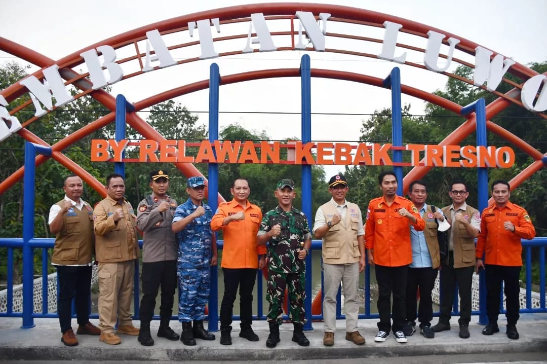 MADIUN,MATAMAJA GROUP – Danrem 081/DSJ Kolonel Inf H. Sugiyono menghadiri peresmian Rekonstruksi Jembatan Kali Luworo di Pilangkeceng Kabupaten Madiun, Kamis (13/4/2023). Peresmiannya dilakukan oleh Kepala BNPB Letjen TNI Suharyanto.