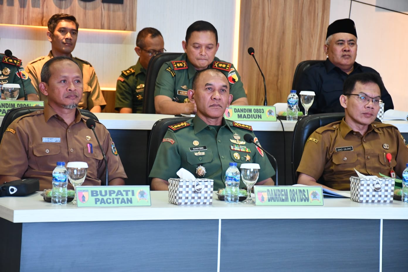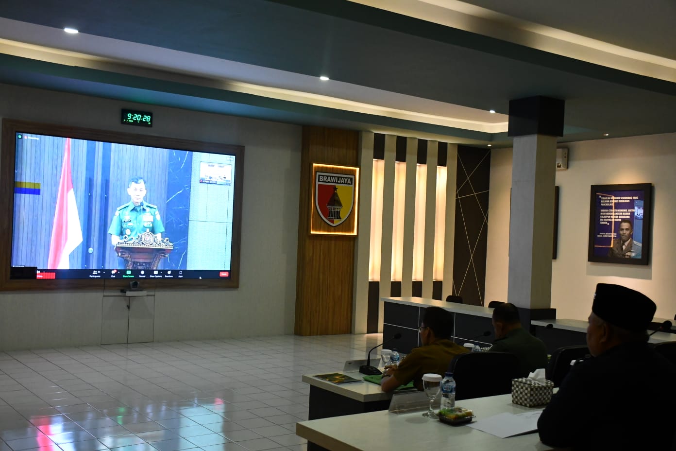 MADIUN, BUSERJATIM.COM GROUP- Danrem 081/DSJ Kolonel H. Sugiyono mengikuti Rapat Koordinasi Teknis (Rakornis) Pelaksanaan TNI Manunggal Membangun Desa (TMMD) Ke-117 Tahun Anggaran 2023 yang dilaksanakan secara Virtual Di Ruang Command Center Makorem,
