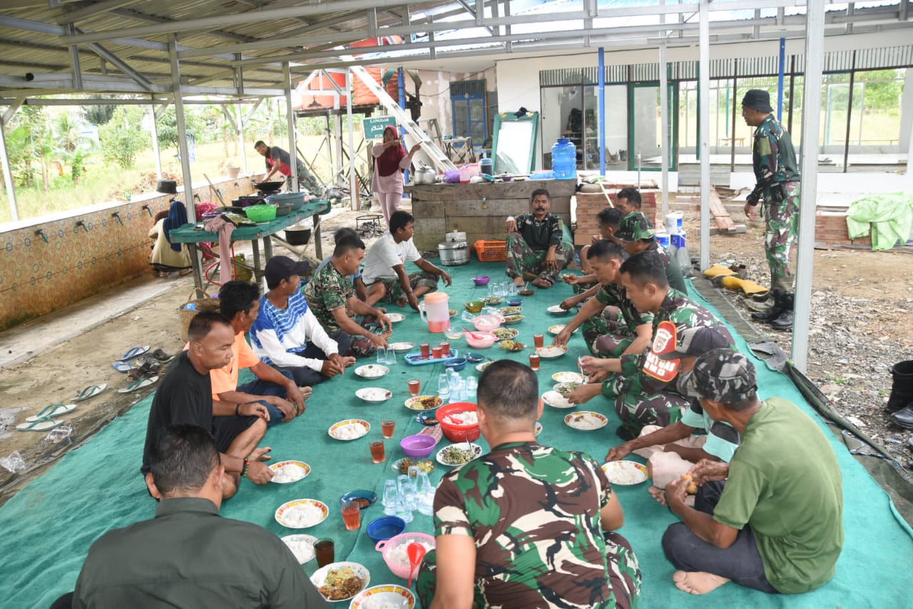 HARUYAN, HST,BUSERJATIM.COM-Di sela-sela kesibukannya meninjau berbagai sasaran fisik TMMD ke-124 Kodim 1002/Hulu Sungai Tengah (HST), Komandan Satuan Tugas (Dansatgas) TMMD ke-124, Letnan Kolonel Infanteri Fery Perbawa, turut serta dalam kegiatan makan siang bersama warga masyarakat di lokasi rehabilitasi langgar Darussalam. Kegiatan ini berlangsung pada hari Rabu, 28 Mei 2025.