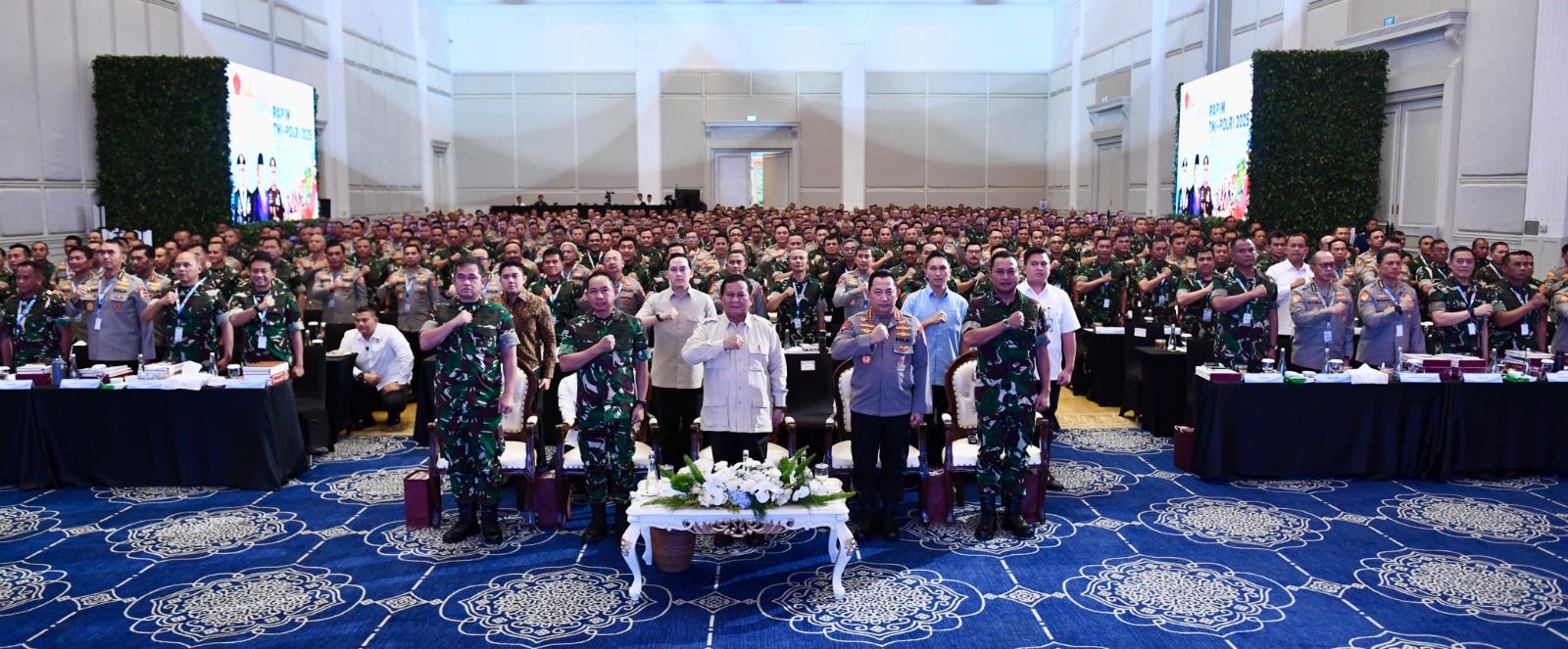 Rapim yang dipimpin langsung oleh Presiden Republik Indonesia (RI) Prabowo Subianto didampingi Panglima TNI Jenderal TNI Agus Subiyanto, Kepala Staf TNI Angkatan Darat (KASAD) Jenderal TNI Maruli Simanjuntak, Kepala Staf TNI Angkatan Laut (KASAL) Laksamana TNI Dr. Muhammad Ali, S.E., M.M., M.Tr.Opsla., dan Kepala Staf TNI Angkatan Udara (KASAU) Marsekal TNI Mohamad Tonny Harjono serta diikuti seluruh 631 Perwira Tinggi dan menengah dari jajaran TNI-Polri.