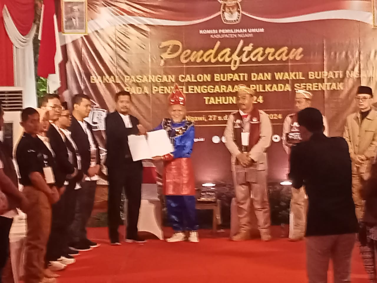 Kirab tersebut diikuti oleh ribuan pendukung yang mengiringi pasangan Ony-Anwar menuju KPU Ngawi untuk mendaftarkan diri. Pasangan ini didukung oleh 12 partai politik pengusung yang memiliki keterwakilan kursi di DPRD Kabupaten Ngawi, di antaranya PDIP, PKB, Golkar, Gerindra, PKS, PAN, dan Demokrat. Selain itu, partai lainnya yang turut mendukung adalah Hanura, Nasdem, Perindo, PPP, dan Partai Gelora.