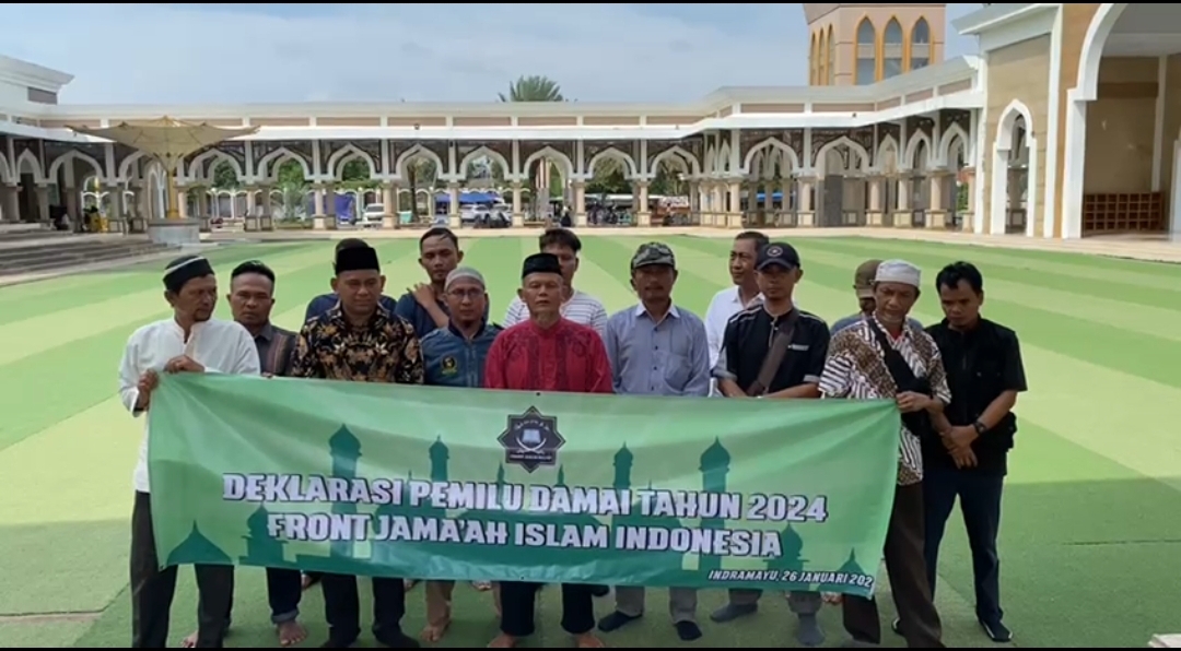Indramayu,- DPD Forum Jamaah Indonesia (FJI) Kabupaten Indramayu menyelenggarakan kegiatan Deklarasi Pemilu Damai di Pelataran Masjid Islamic Center Kabupaten Indramayu. Jumat (26/1/2024) kemarin.