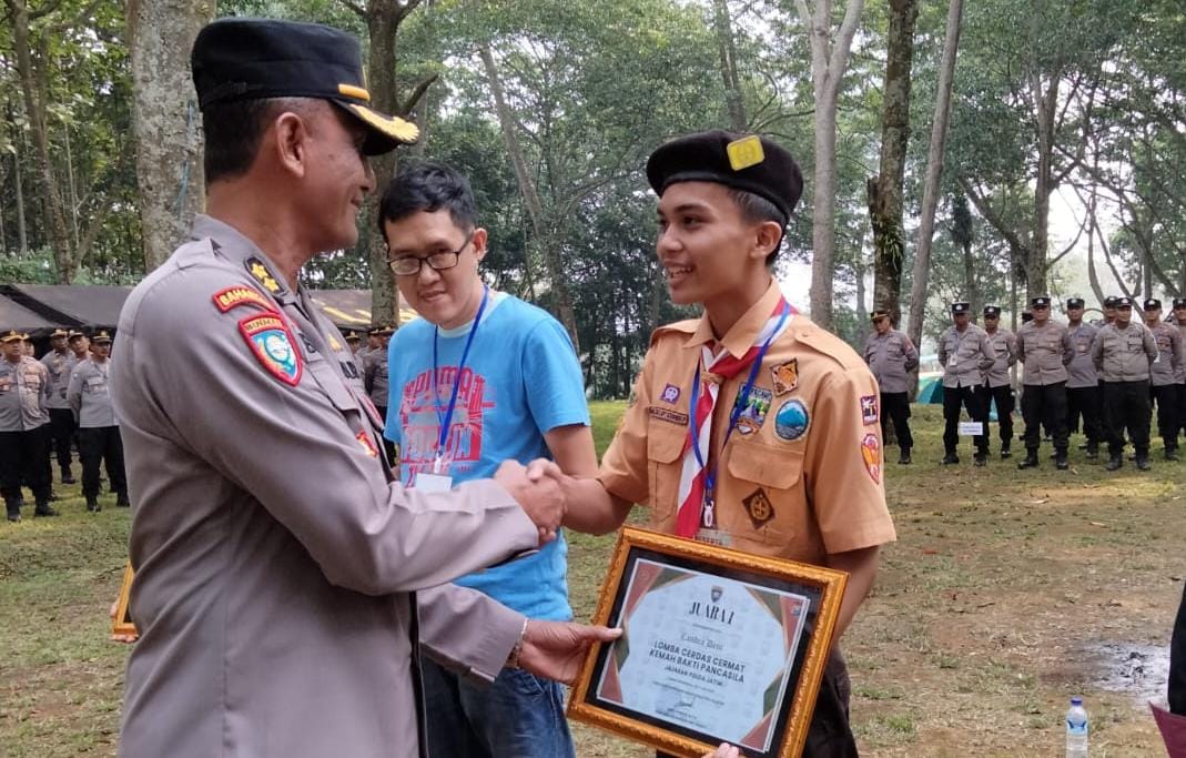 PACITAN, BUSERJATIM. COM GROUP -Kabar baik, perwakilan dari Polres Pacitan yang juga Ketua Osis SMA N 1 Pacitan Muhamad Alif Sumba Perdana raih juara 1 lomba cerdas cermat pada ajang Kemah Bakti Pancasila yang diselenggarakan Ditbinmas Polda Jawa Timur.