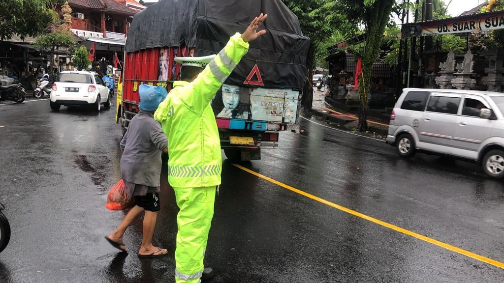 Hujan deras yang mengguyur wilayah Badung dan sekitarnya, tidak menyurutkan Satuan Lalu Lintas (Satlantas) Polres Badung untuk menertibkan kendaraan yang berlalu lintas.