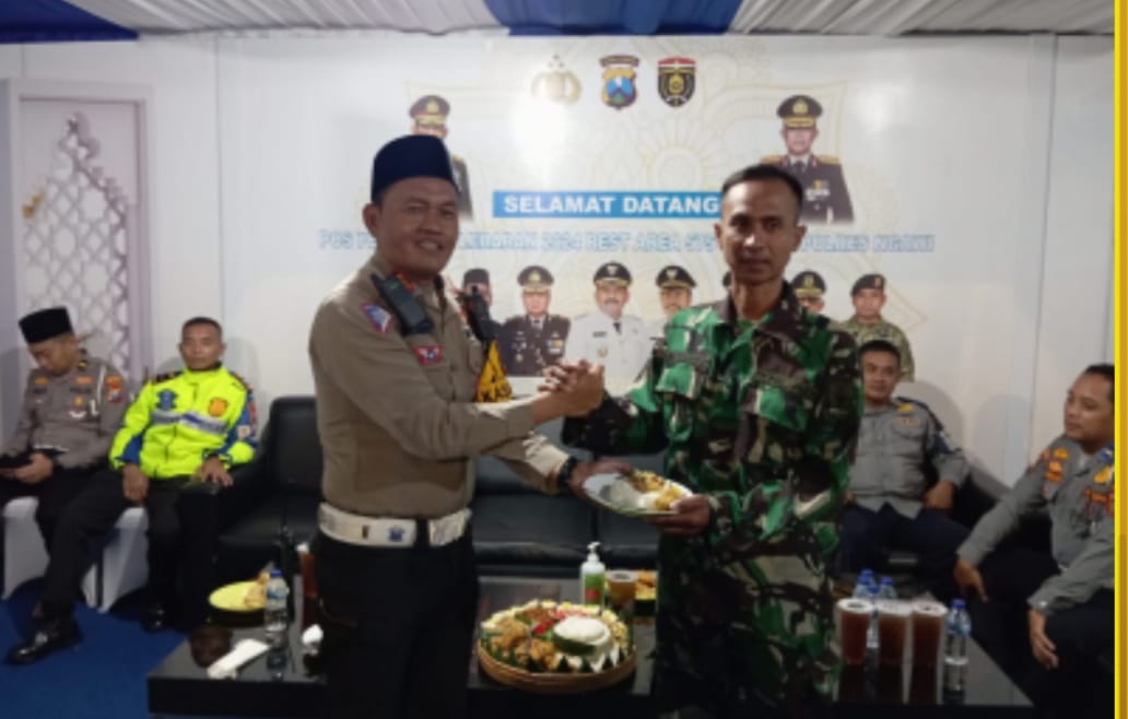 NGAWI,BUSERJATIM.COM GROUP- Ada yang berbeda di rest area Tol KM 575 A Ngawi saat menjelang Magrib kemarin. Pasalnya Satlantas Polres Ngawi membawa tumpeng dan menggelar doa bersama di posko pelayanan mudik tersebut, pada Minggu (7/4/2024)