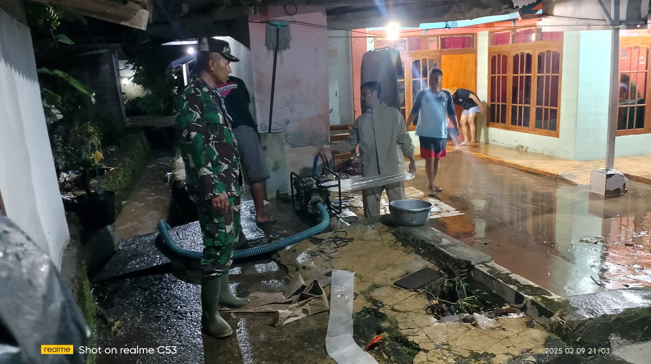 Danramil menyampaikan, dari hasil asesmen sementara, banjir itu disebabkan meningkatnya debit air akibat hujan yang mengguyur wilayah tersebut sehingga tidak tertampung sungai maupun saluran drainase.