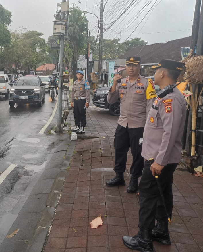 Siang hari hujan turun mengguyur ditengah padatnya lalu lintas, tak mengurungkan niat Polisi berangkat Melati Dua (AKBP) itu untuk turun langsung ke lapangan memantau personil dan ikut mengatur arus lalu lintas dijalan utama Denpasar – Gilimanuk (Singaraja).