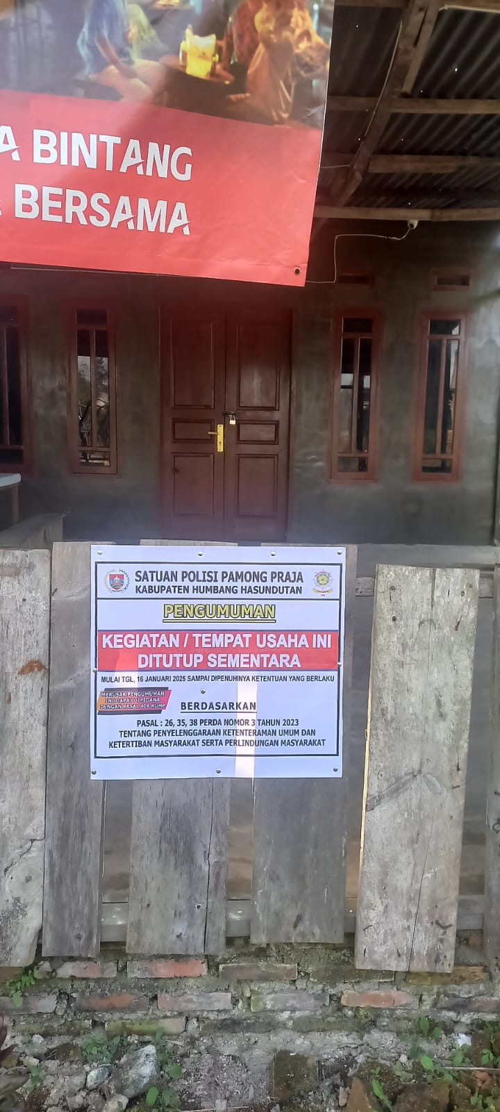 Selain melakukan pendataan sejumlah warung tuak dan tempat hiburan yang memiliki ijin dan ataupun tidak memiliki ijin, petugas juga melakukan penyegelan terhadap salah satu rumah yang disinyalir menyalahi aturan berdasarkan Perda Nomor 3 Tahun 2023 Tentang Penyelenggaraan Ketentraman Umum dan Ketertiban Masyarakat serta Perlindungan Masyarakat.