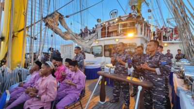 Sebelum meninggalkan tanah air untuk mengemban misi pelayaran muhibah duta bangsa, Satgas Kartika Jala Krida 2023 KRI Bima Suci (KRI BSC) melaksanakan doa bersama dengan anak-anak yatim dari Panti Asuhan Yayasan Miftahul Hasanah di atas geladak KRI BSC yang sedang sandar di Dermaga Batu Ampar, Batam, Kepulauan Riau, Minggu (09/04).