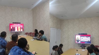 Kepala Lembaga Pemasyarakatan Kelas IIB Tabanan beserta jajaran mengikuti kegiatan Pembukaan Rangkaian Hari Dharma Karya Dhika ke-78 dan Doa Kemenkumham Untuk Negeri Tahun 2023 secara virtual.