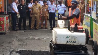 Kadis PUPR Pemkot Batu Alfi Nurhidayat, S.T., M.T bersama Pj. Wali Kota Batu Aries Agung Paewai, saat tengah turun langsung ke lapangan untuk memperbaiki dan membenahi jalanan yang berlubang di Jalan Kartini