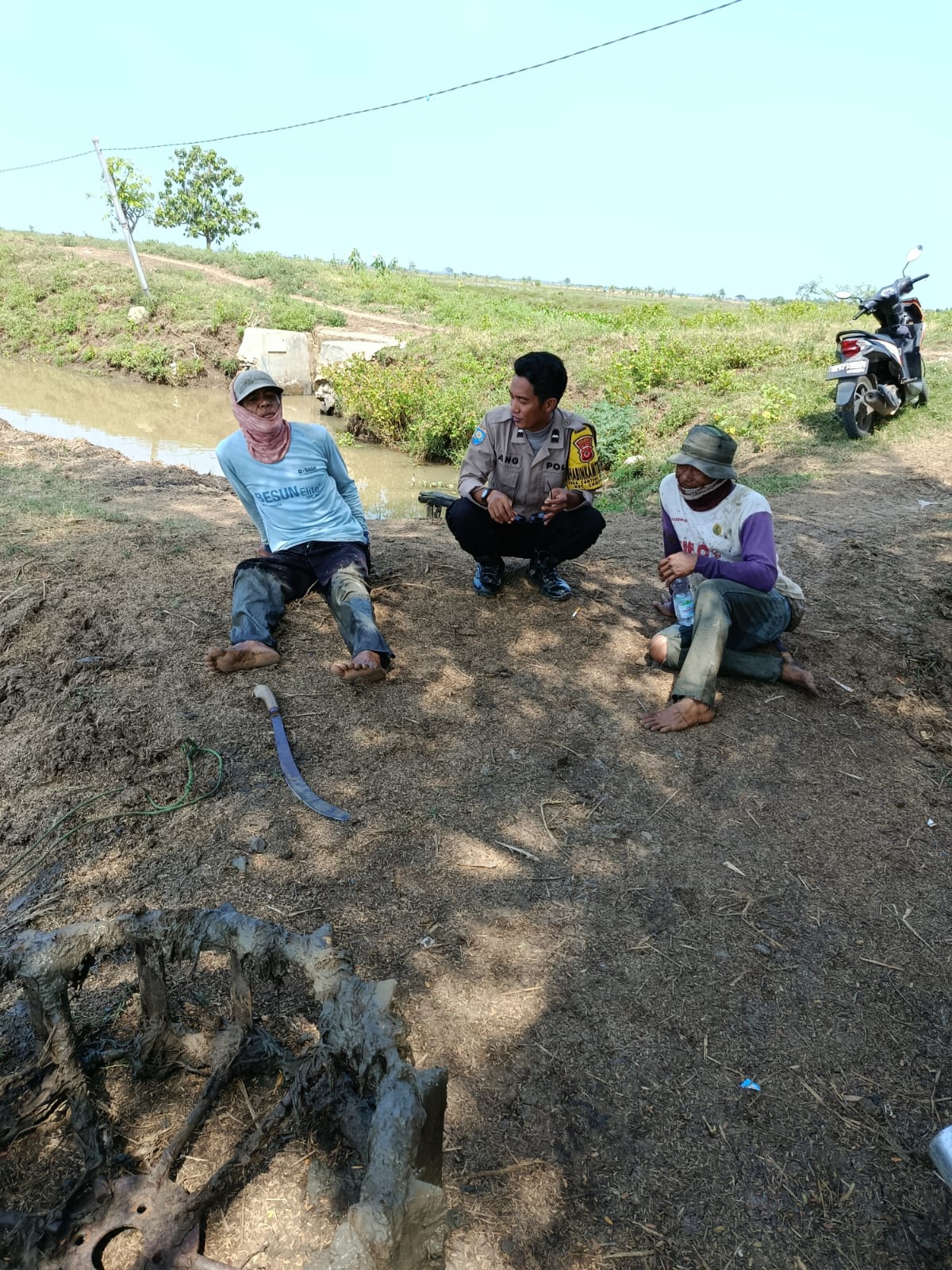 Indramayu – Di tengah teriknya matahari dan suara gemericik air saluran irigasi yang mengalir tenang, AIPDA Aang Kunaefi seorang Bhabinkamtibmas Polsek Cantigi Polres Indramayu Polda Jabar tampak akrab berbincang dengan dua orang petani yang tengah beristirahat di pematang sawah Desa Panyingkiran Lor, Kecamatan Cantigi, Kabupaten Indramayu. Kamis (10/7/2025)