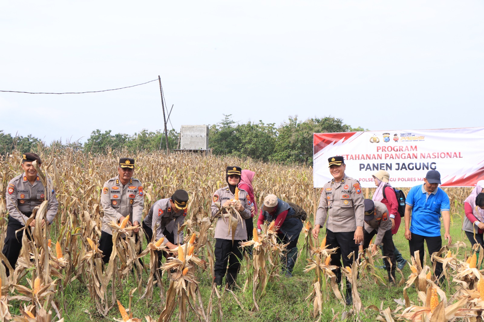 Panen jagung dilakukan secara simbolis oleh Kapolres Madiun bersama jajaran PJU dan unsur Muspika. Dari panen tersebut, berhasil dikumpulkan hasil sekitar 1 ton jagung dari lahan pertanian seluas 4.200 m².