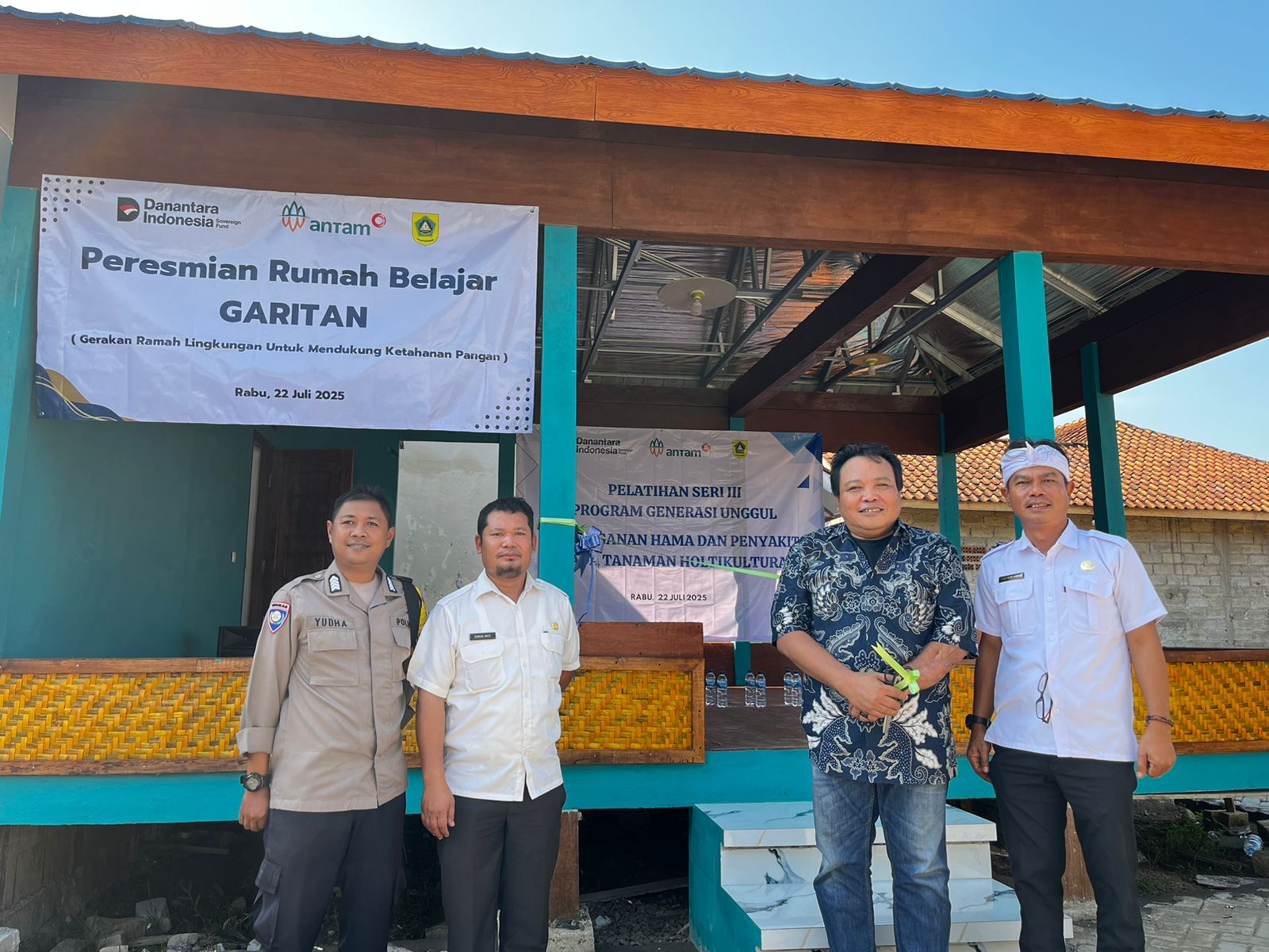 Kegiatan tersebut dihadiri langsung oleh CSR PT. Antam Tbk UBPE Pongkor, diwakili oleh Bapak Edi Ayuba, S.T., yang sekaligus meresmikan rumah belajar tersebut. Hadir pula Kepala Desa Kalongliud, Bhabinkamtibmas Desa Kalongliud, Koordinator Penyuluh Wilayah III Kabupaten Bogor, serta ketua dan anggota kelompok tani se-Desa Kalongliud dan warga masyarakat sekitar.