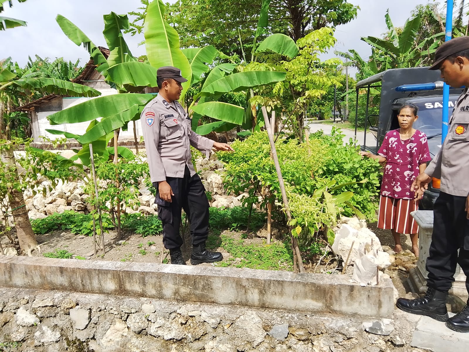 “Bhabinkamtibmas berpatroli dan berdialog dengan warga di desa binaannya, agar pemanfaatan lahan pekarangan secara maksimal demi menunjang ketahanan pangan nasional,” ujar Kapolsubsektor Kasreman Iptu Heri Riyanto.