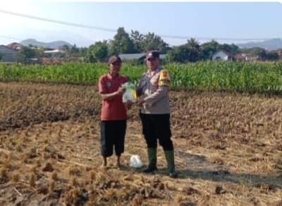 Majalengka, Dalam rangka mendukung program ketahanan pangan nasional, personel Polsek Cigasong, Polres Majalengka Bripka Dwi B, melaksanakan kegiatan tanam jagung bersama para petani di wilayah Kelurahan Cicenang, Kecamatan Cigasong, Kabupaten Majalengka, Selasa (22/07/2025).