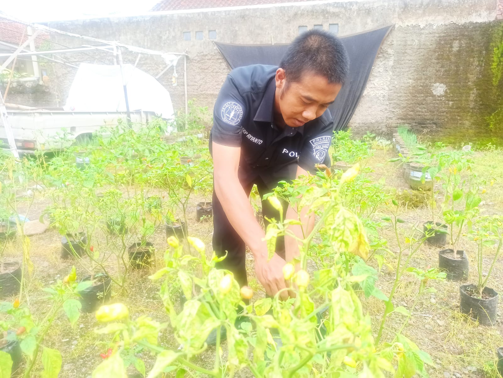 Dengan memanfaatkan pengetahuan bertani yang diperoleh dari orangtuanya, Bripka Asep Riyanto yang saat ini bertugas di Humas Polres Majalengka, berhasil mengubah halaman rumahnya menjadi lahan produktif.