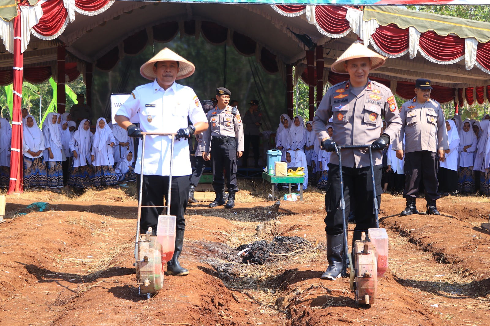 Kegiatan yang dilaksanakan di lahan seluas 1,5 hektar milik Pondok Pesantren Ma’hadul Muta’allimin yang terletak di Dusun Katerban, Desa Sekaralas, Kecamatan Widodaren, dihadiri oleh Wakapolres Ngawi Kompol Asrori Khadafi dan Forpimda Kab. Ngawi