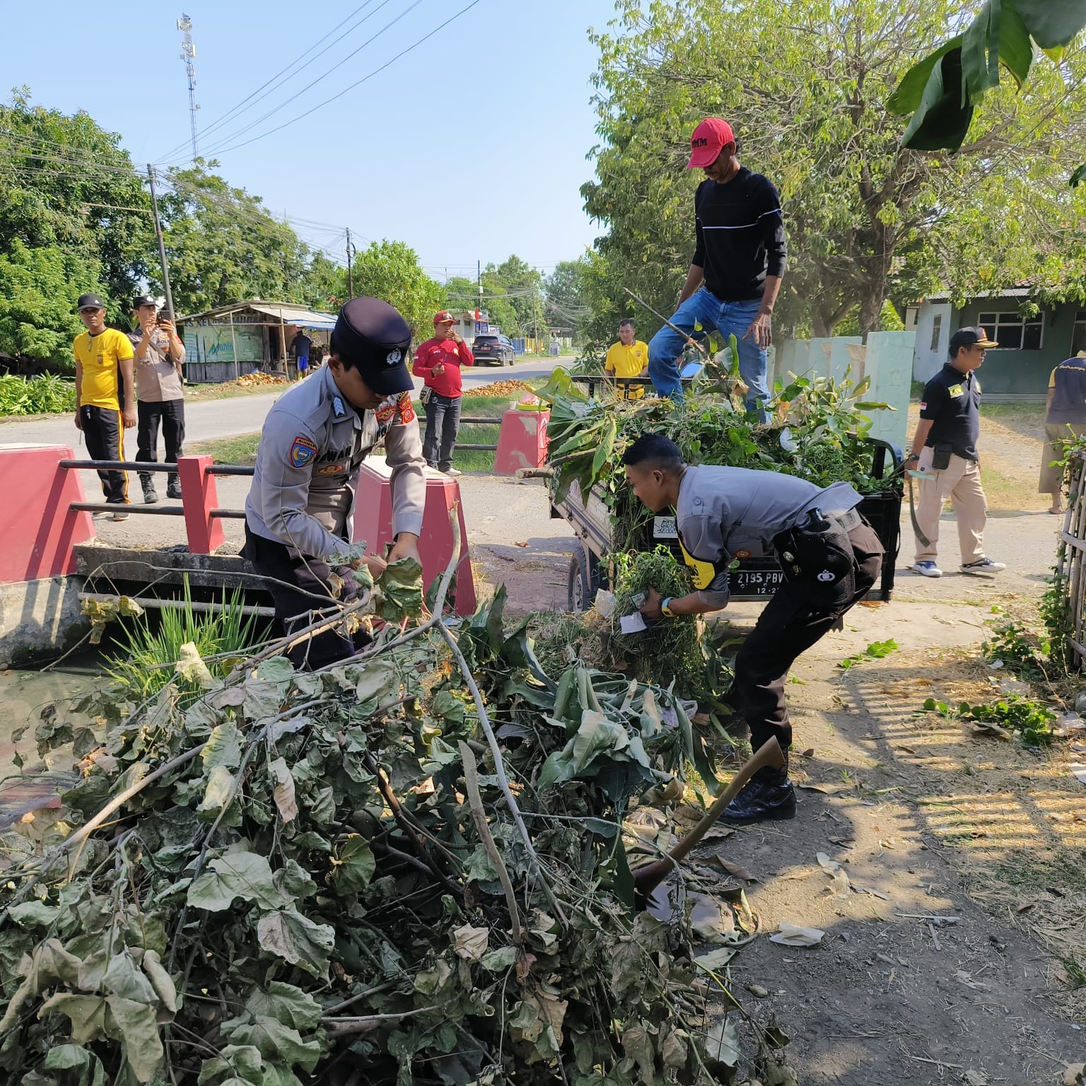 Kegiatan gotong royong ini diikuti oleh sejumlah aparat gabungan TNI-Polri, Satpol PP, dan masyarakat setempat yang turut berpartisipasi dalam membersihkan saluran irigasi yang tersumbat oleh sampah dan lumpur.