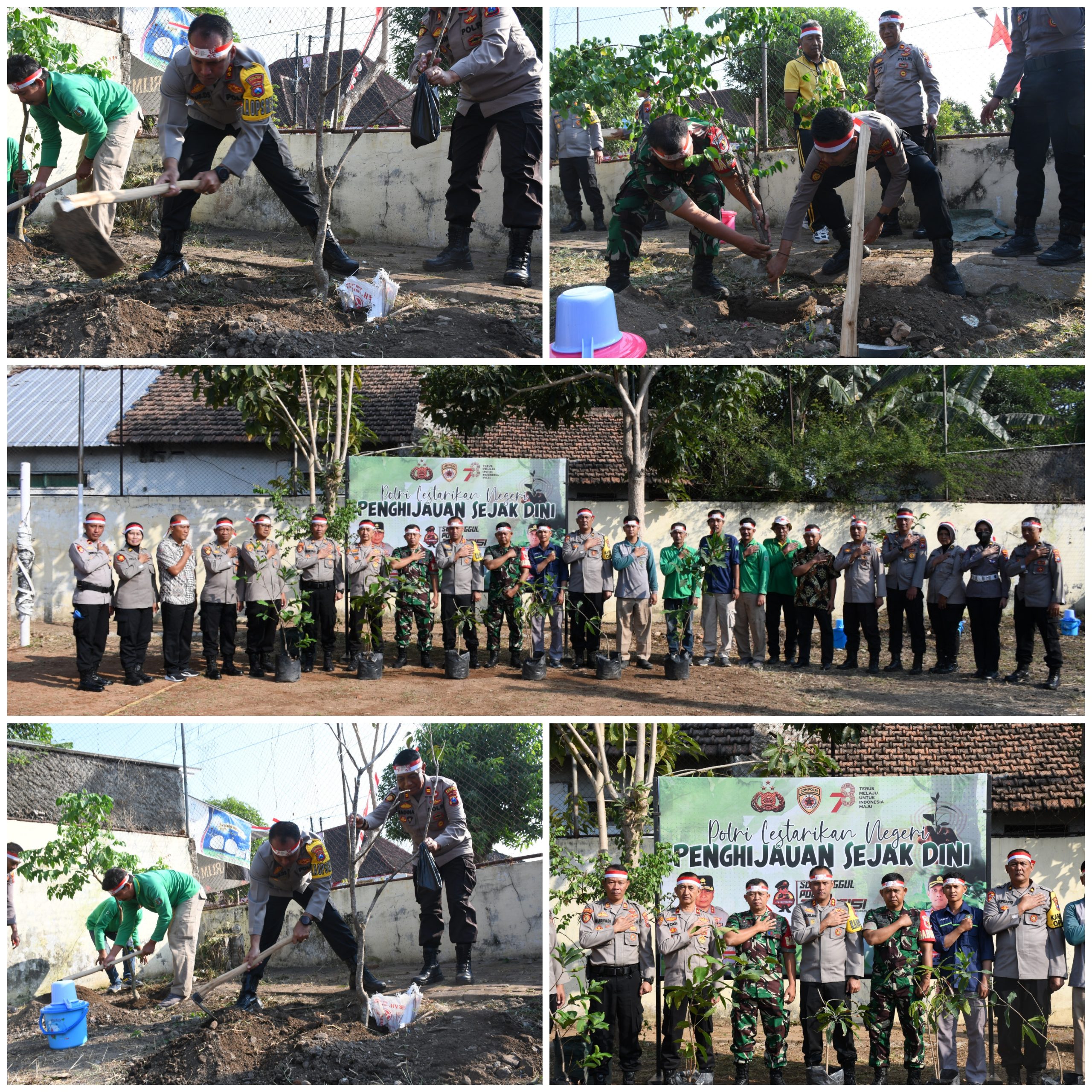 Kegiatan penghijauan tersebut merupakan salah satu bentuk kepedulian menyelamatkan bumi dan penghijauan kali ini di awali dengan penanaman pohon berbagai jenis di area lapangan Volly Ball Polres Madiun Kota Jalan Tangkuban Prau Kota Madiun, Jumat (18/8/2023) pagi.