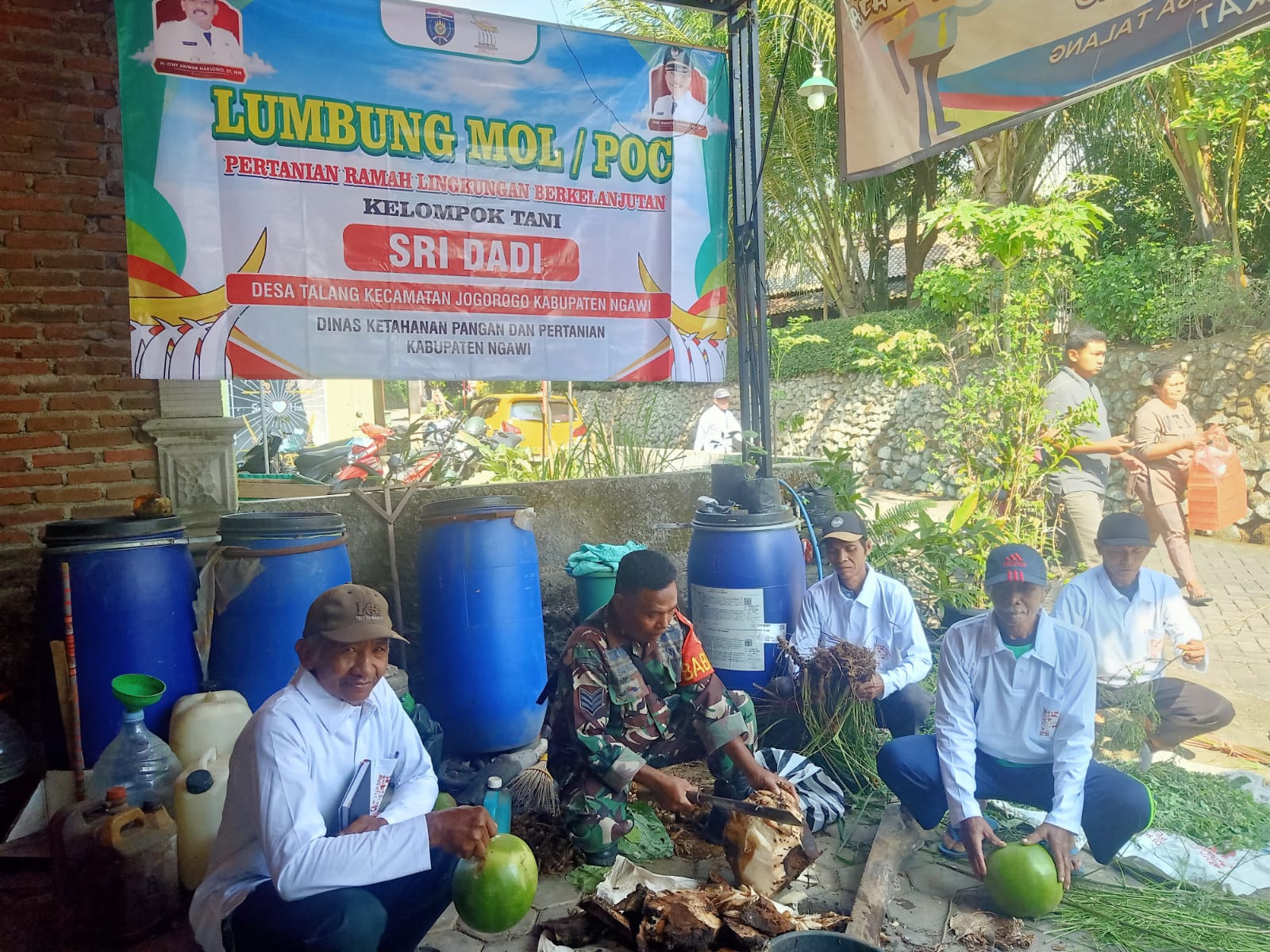 NGAWI, BUSERJATIM.COM GROUP – Anggota Babinsa Koramil 0805/08 Jogorogo Kodim 0805/ Ngawi Serka Santoso bersama anggota PPL, memberikan edukasi cara pembuatan pupuk organik kepada kelompok tani Sri Rejeki yang bertempat di Desa Talang, Kec. Jogorogo, Kabupaten Ngawi. Senin (7/7/2025).
