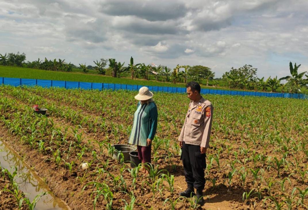 Dukung Swasembada Pangan, Bhabinkamtibmas Polsek Gabuswetan Pantau Perkebunan Jagung di Desa Kedokangabus
