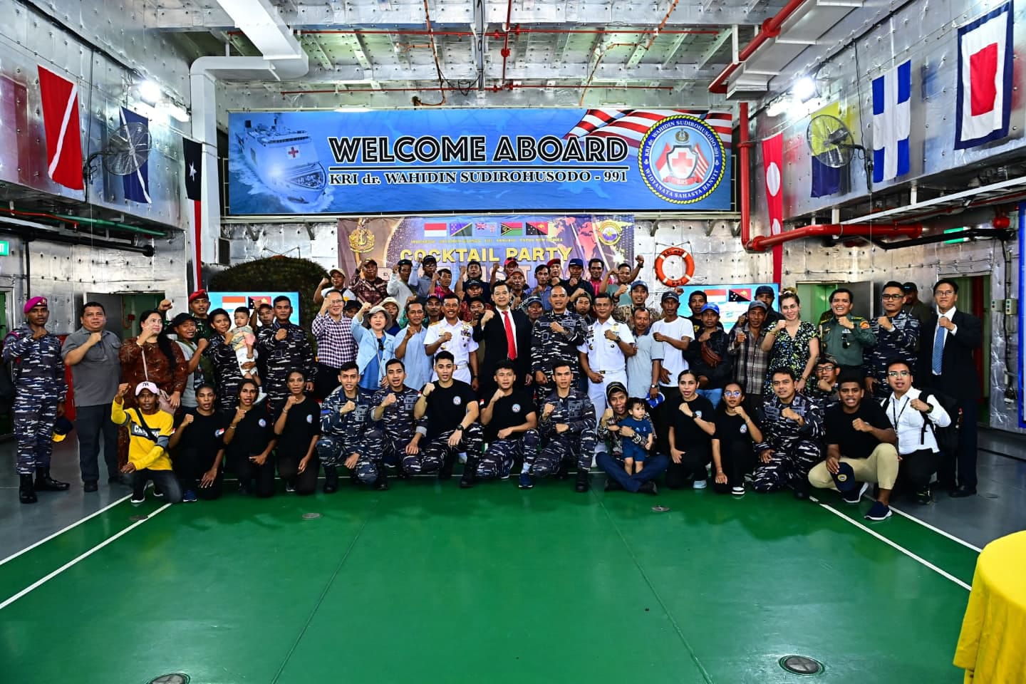 Setelah itu rombongan diarahkan ke lounge room Perwira dilanjutkan pengisian buku tamu dan rombongan diajak untuk menyaksikan latihan kesenian tarian nusantara di geladak heli KRI WSH-991 bersama-sama dengan masyarakat yang hadir.