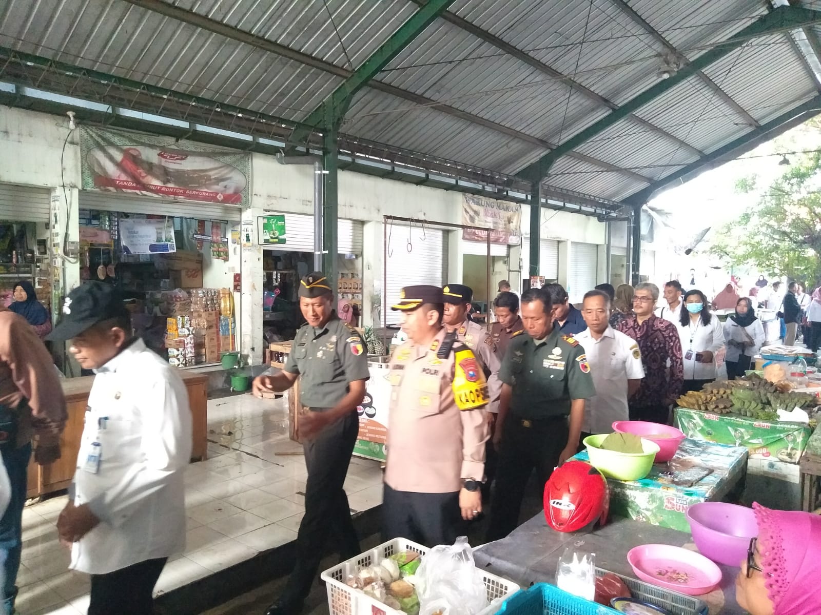 Rombongan forkopimda, pada Rabu (28/2/2024) melakukan kunjungan yang dimulai dari Pasar Nglames Kecamatan Madiun, Gudang Bulog Kecamatan Balerejo, Program Gertak di Kecamatan Geger, hingga berakhir di Pasar Dolopo ini untuk memastikan ketersediaan bahan pokok khususnya di Kabupaten Madiun.