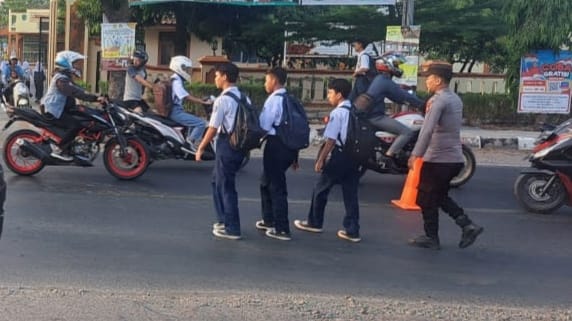 Dengan ramah dan sigap, Bripda Adhie membantu para pelajar menyeberang jalan di depan sekolah, memastikan bahwa arus lalu lintas berhenti dan memberikan ruang aman bagi mereka. Langkah ini bertujuan untuk mengurangi risiko kecelakaan lalu lintas di sekitar sekolah, yang sering kali dipadati oleh kendaraan di pagi hari.