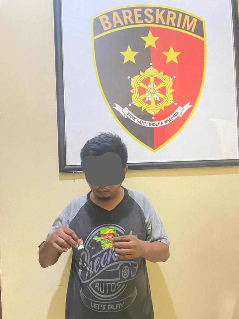 Dari informasi tersebutlah kita lakukan penyelidikan lebih mendalam, dan berhasil mengamankan tersangka berinisial A tersebut beserta barang bukti sabu-sabu yang dibungkus dalam pipet dan plastik warna hijau.