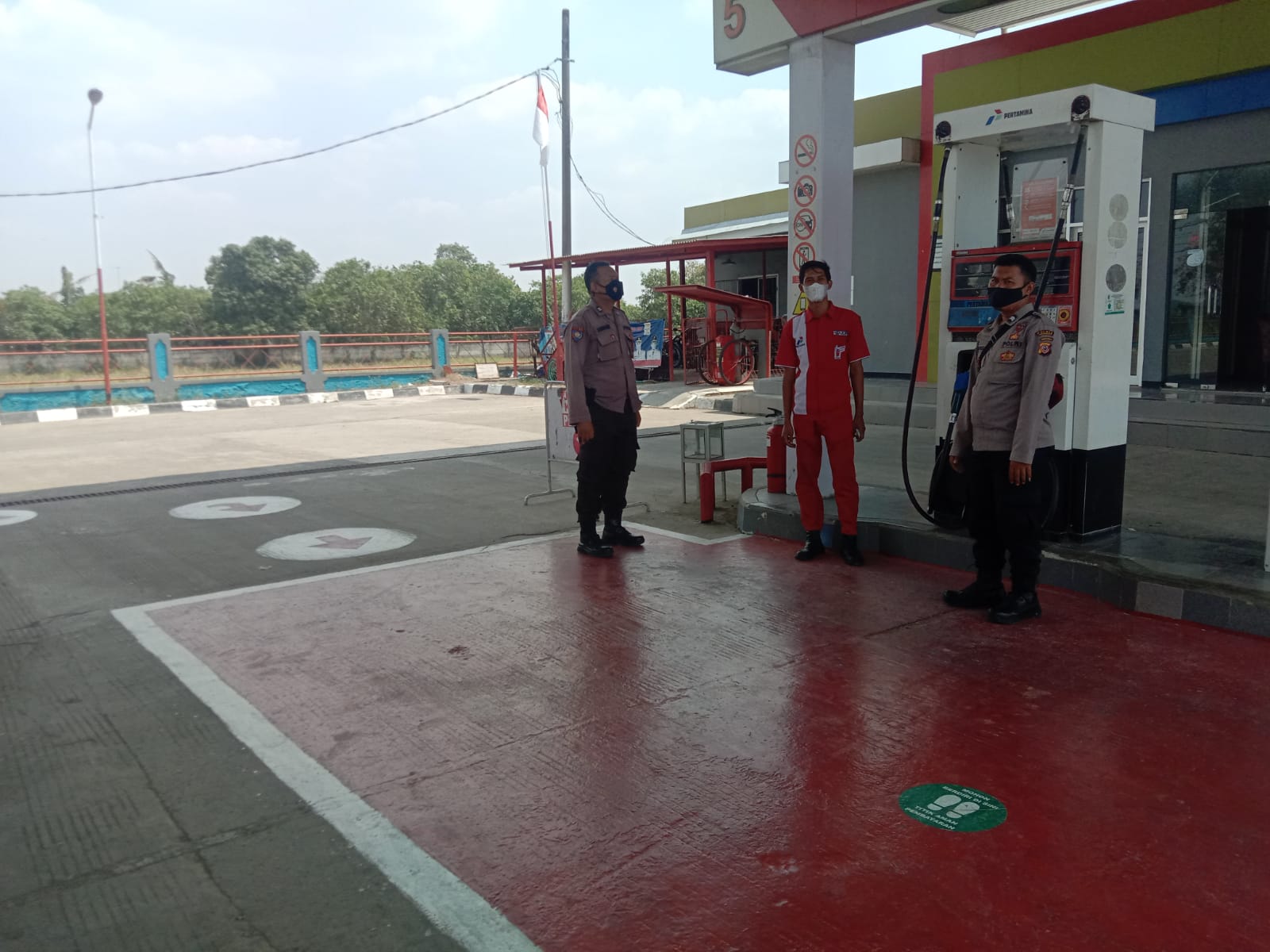 Saat patroli, petugas menyambangi Pom Bensin Desa Gabuswetan, Kecamatan Gabuswetan, Kabupaten Indramayu.