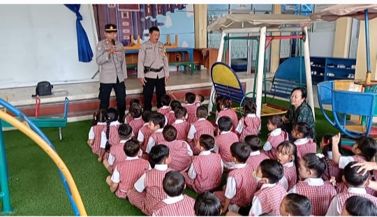Dalam kegiatan ini Kanit Binmas Polsek Denbar AKP I Wayan Budiartana, S. H., didampingi Bhabinkamtibmas Aiptu Made Merjaya, S. H., mengunjungi sekolah Taman Kanak-kanak (TK) Sentana Kumara di Banjar Seblanga Desa Dauh Puri Kauh Denpasar, Selasa (21/5/2024) pagi.