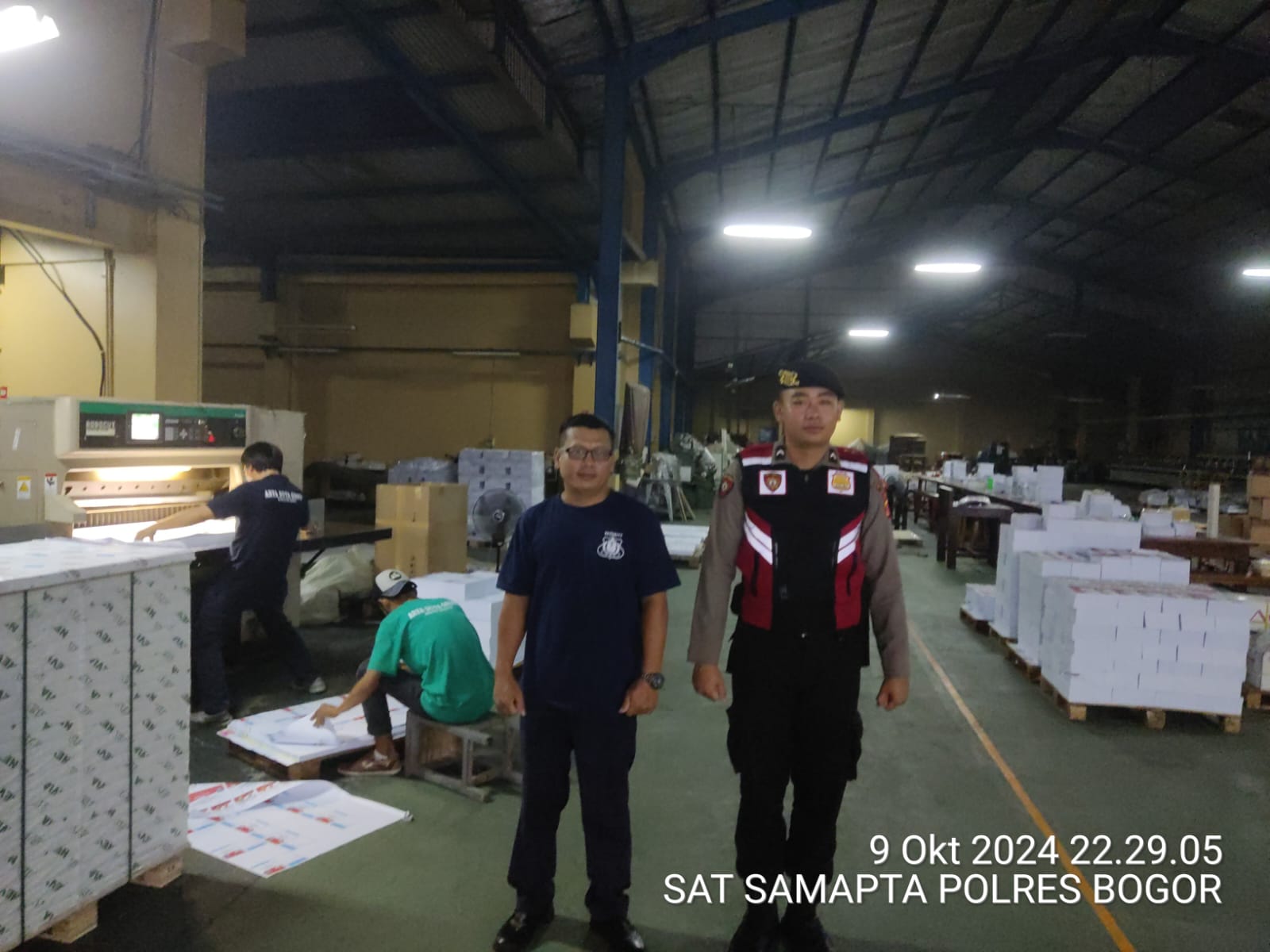Sekali Padal Ipda Kuswantoro Panit Samapta Polsek Cibinong POLRES Bogor Polda Jabar bersama anggota Polres Bogor Lainnya, Rabu 9 Oktober 2024 dimulai pukul 08.00 wib sd selesai selama 1X24 jam secara bergantian, dengan melakukan Pengamaman serta Patroli berkala di seputaran Lokasi pencetakan surat suara di percetakan CV ARYA DUTA Alamat Jl. Raya Sukahati No. 8A Kel. Sukahati Kec. Cibinong Kab. Bogor