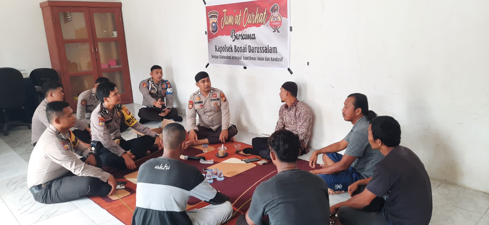 ROKAN HULU,BUSERJATIM.COM -Kapolsek Bonai Darussalam Polres Rokan Hulu (Rohul) Iptu Suheri Sitorus Giat Jum’at Curhat dengan para Tokoh Masyarakat (Tomas) Bonai Darussalam, Jumat (6/1/2023) sekitar pukul 10.00 Wib.