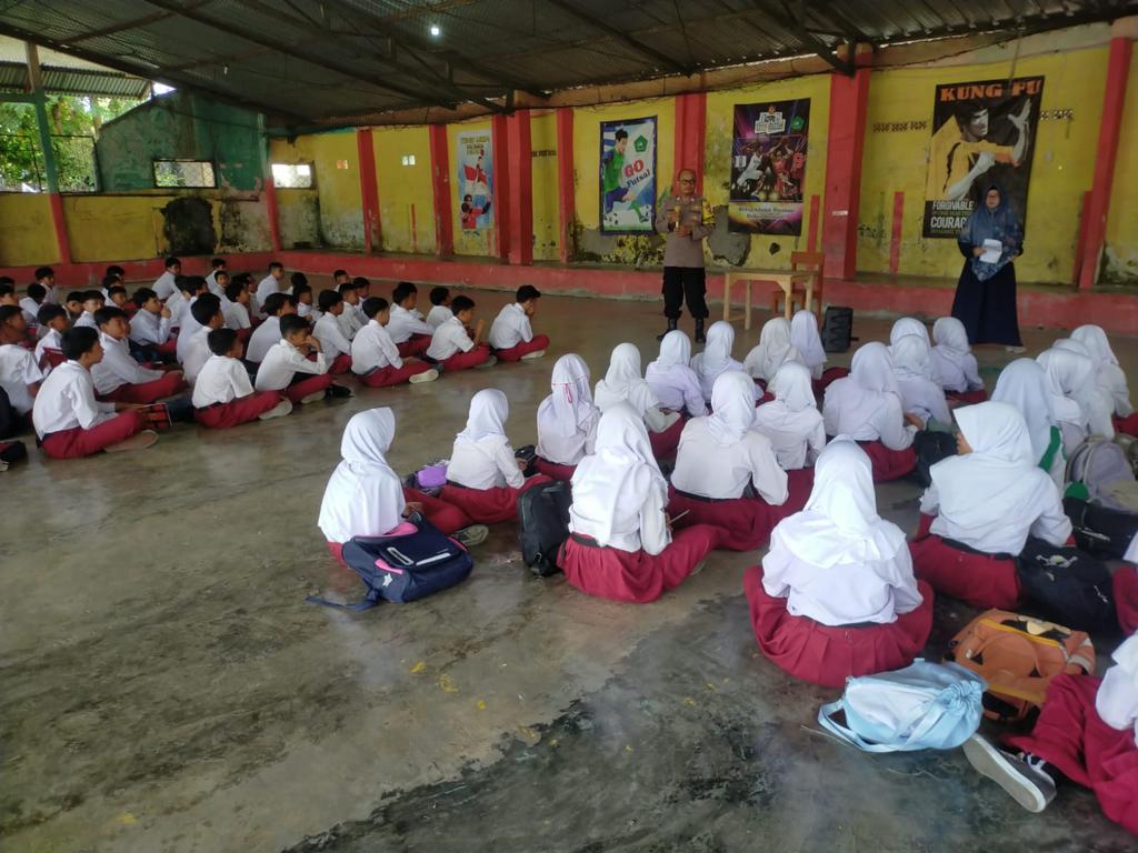 Adapun siswa yang mengikuti giat tersebut berjumlah Siswa Putra 70 Dan Siswa Putri 40, tujuan dari giat MPLS ini dengan dasar memberikan pengetahuan kepada pelajar baik Siswa Putra dan Siswa Putri untuk menjauhi hal – hal yang berkaitan dengan hukum pidana untuk di jauhi karena dampaknya akan mengakibatkan masuk penjara di proses hukum pidan dan merusak masa depan karena akan menyakiti hati kedua orangtua, merusak moral dan jauh dari agama menjadi lemah iman, maka jauhi kenakalan remaja dan narkoba, jelasnya
