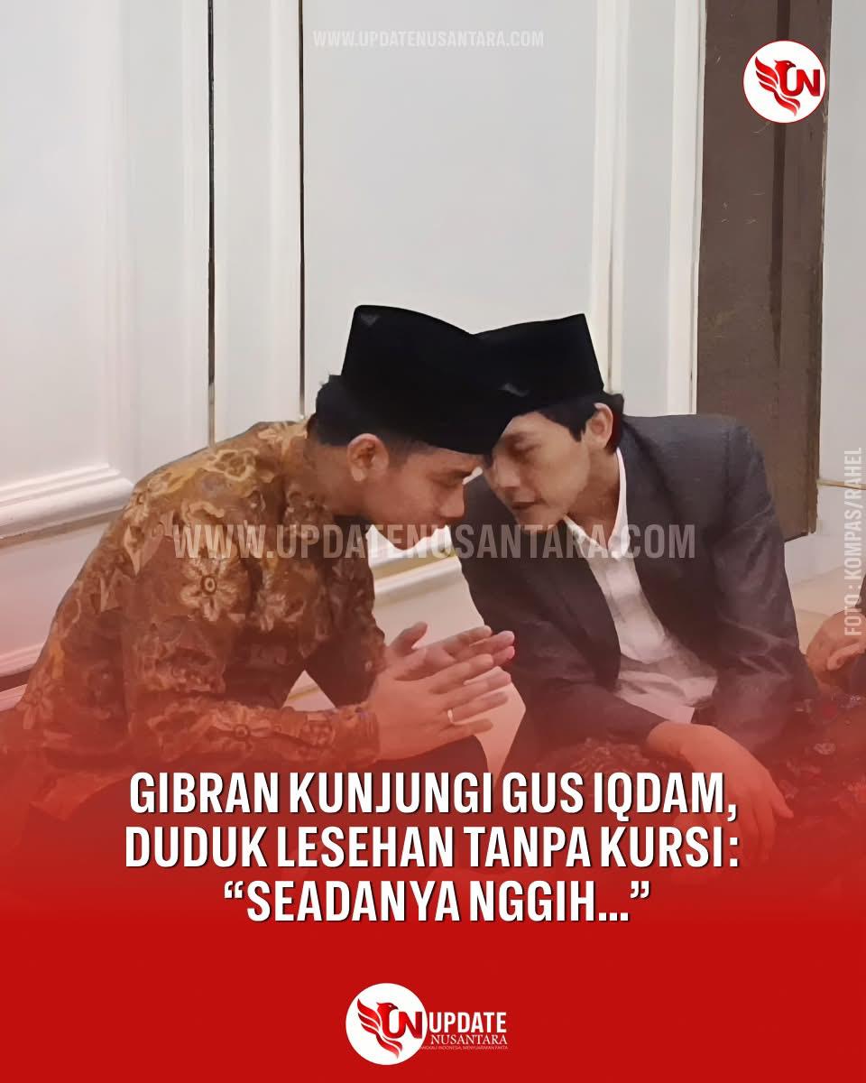 Setelah penyambutan, Gibran dan Gus Iqdam memasuki ruangan pertemuan. Dengan penuh kerendahan hati, Gus Iqdam mengajak Gibran duduk lesehan. “Seadanya nggih, enggak punya kursi, di bawah aja enggak apa-apa,” ujar Gus Iqdam. Gibran pun duduk bersebelahan dengan sang tuan rumah, tampak akrab berbincang meski percakapan keduanya tidak terdengar jelas.