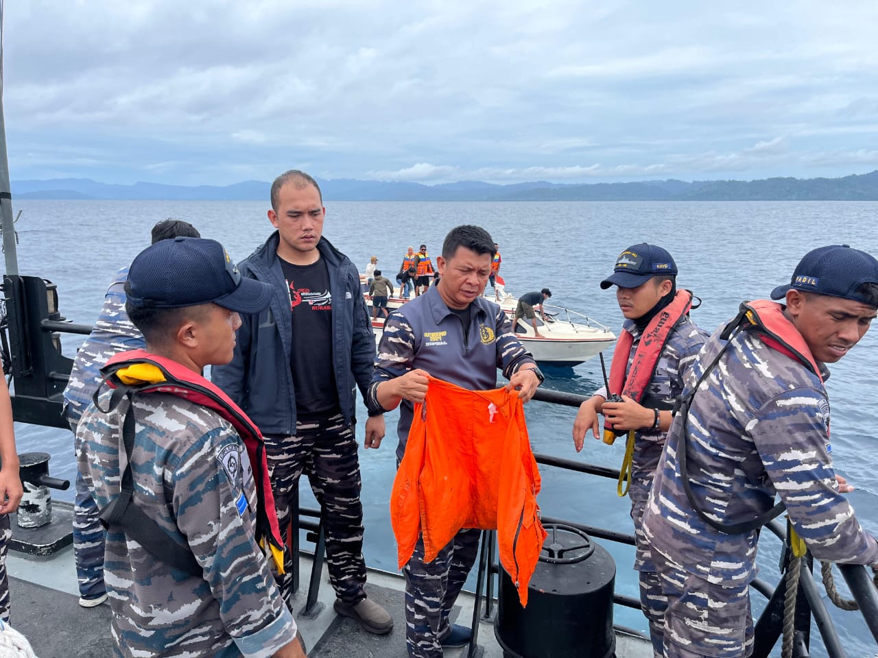 Setelah melaksanakan penyisiran selama kurang lebih 3 jam, sekitar pukul 14.00 WIT, KRI Tatihu-853 didekati kapal nelayan setempat, dimana nelayan tersebut telah menemukan satu buah swimvest berwarna orange di Perairan Pulau Kayoa pada posisi 00°01’14” S – 127°32’46” T. selanjutnya KRI Tatihu-853 melaksanakan penyisiran di area sekitar ditemukannnya swimvest.