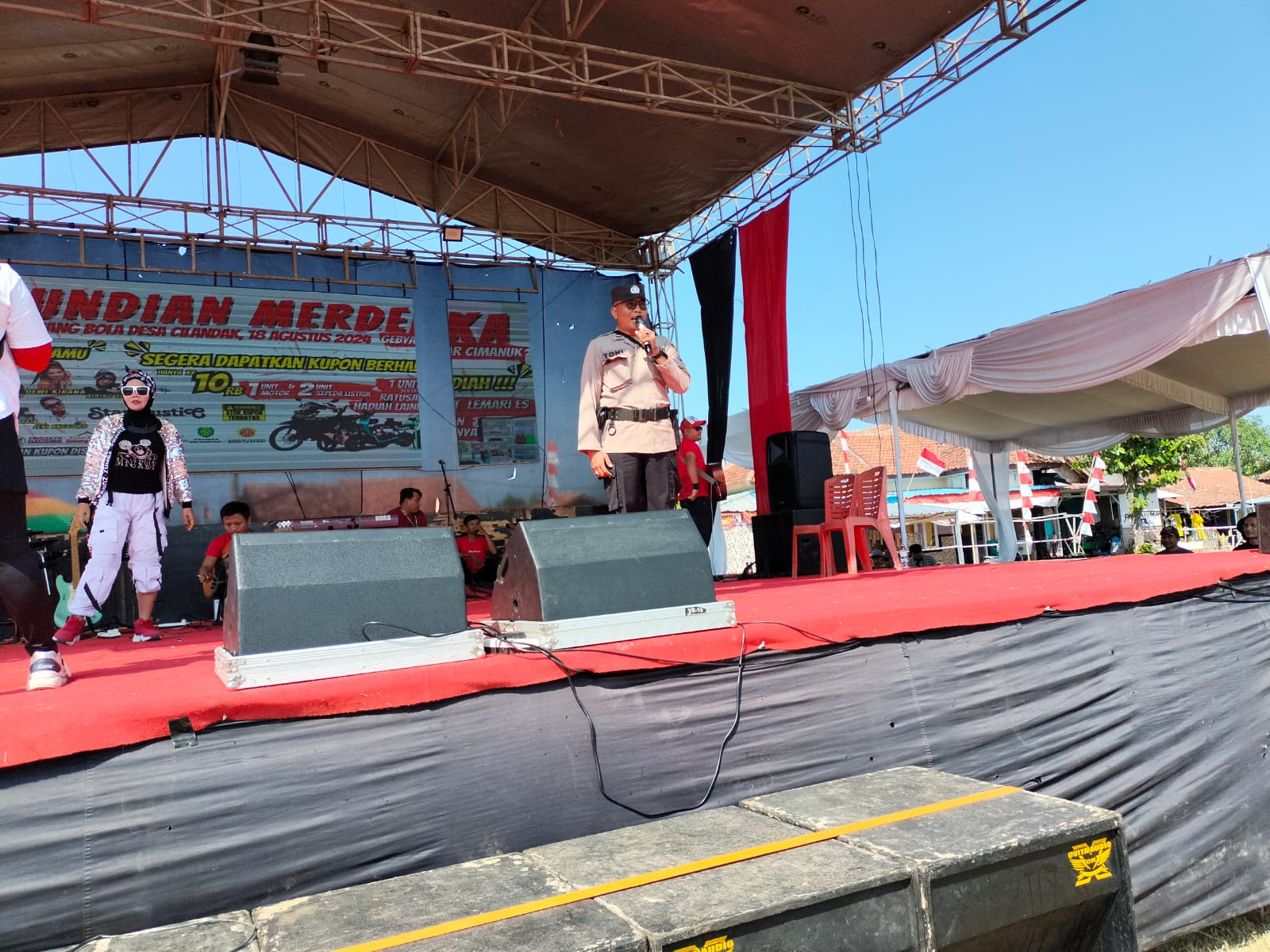 Indramayu, – Personil Polsek Anjatan Polres Indramayu Polda Jabar, menghadiri acara Gebyar Cimanuk dalam rangka memperingati Hari Ulang Tahun Republik Indonesia (HUT RI) ke-79 di Lapangan Sepak Bola Cilandak, Kecamatan Anjatan, Kabupaten Indramayu, Minggu (18/8/2024)